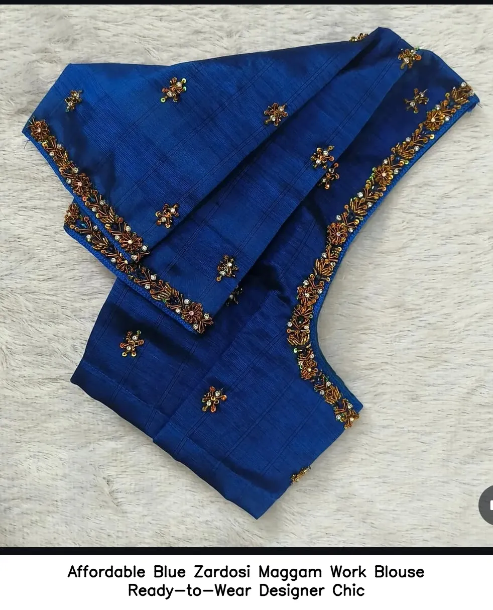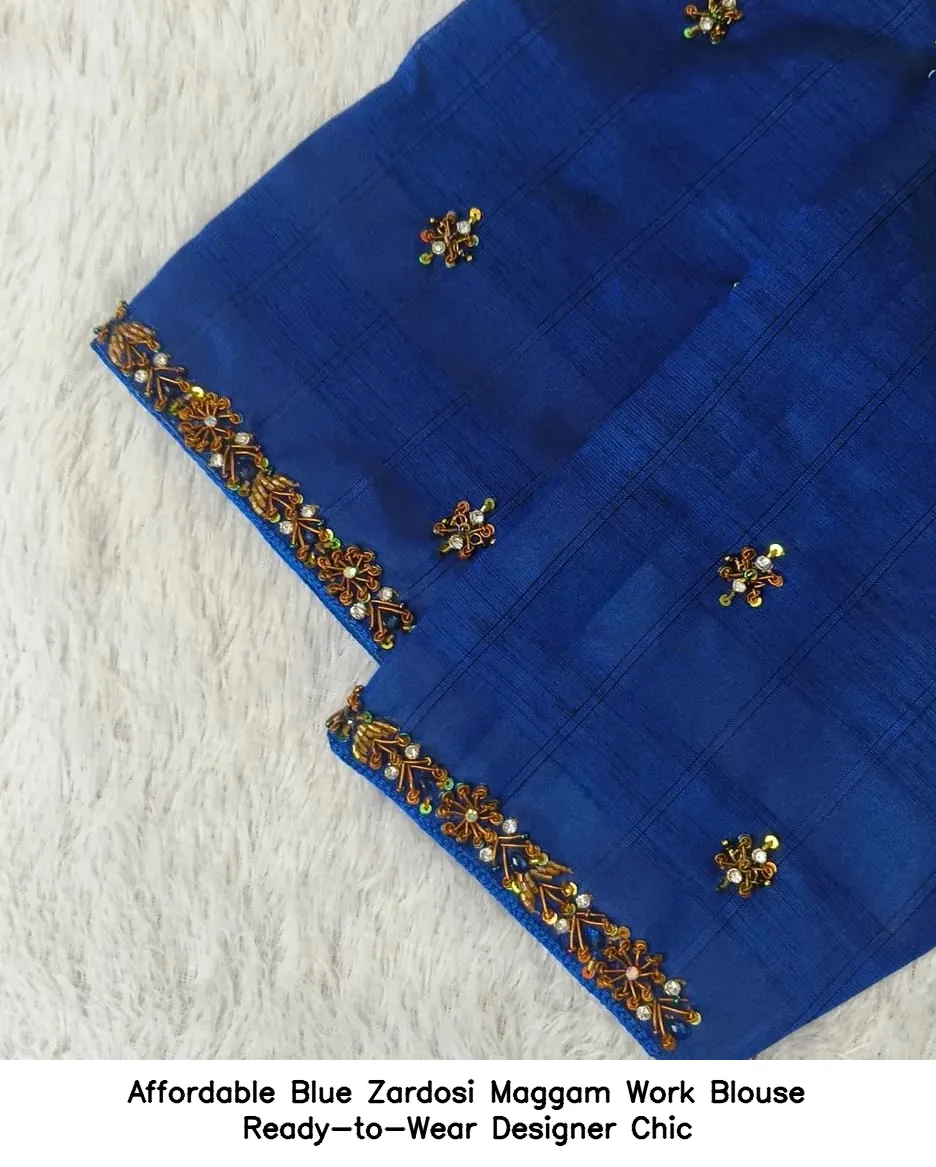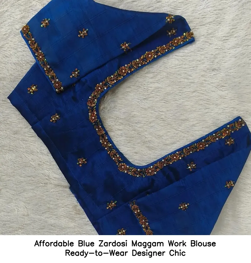 Affordable Blue Zardosi Maggam Work Blouse Ready-to-Wear Designer Chic