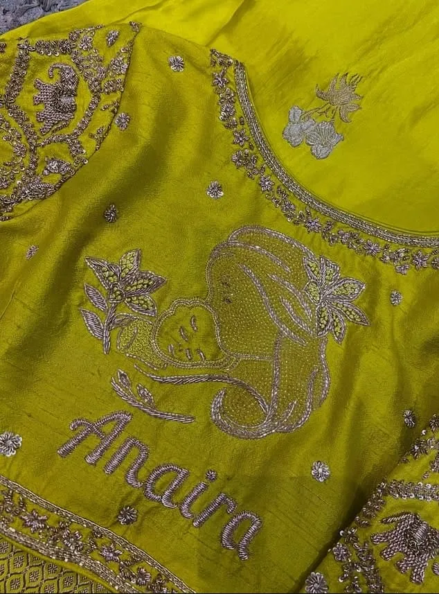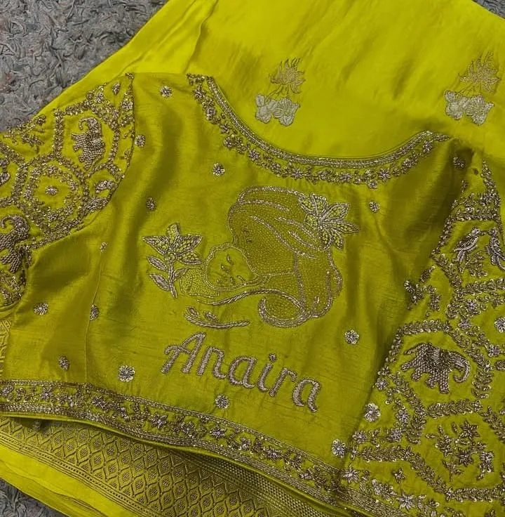 Product Name: Affordable Elegance Light Green Maggam Work Blouse for Baby Shower