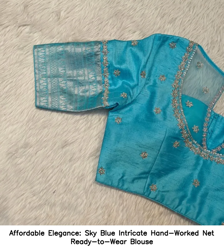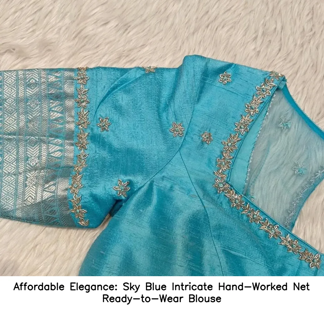 Product Name: Affordable Elegance: Sky Blue Intricate Hand-Worked Net Ready-to-Wear Blouse