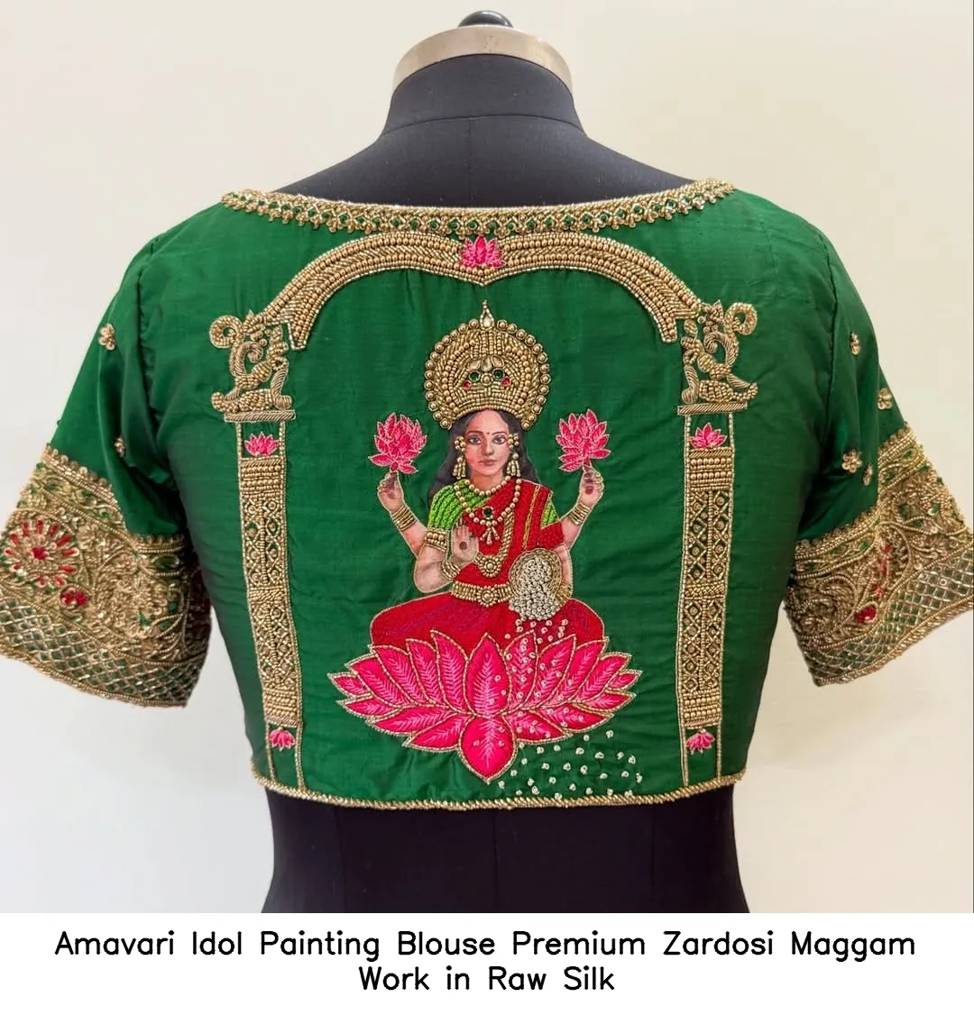 Why Choose Amavari Idol Painting Blouse – Premium Zardosi Maggam Work in Raw Silk?