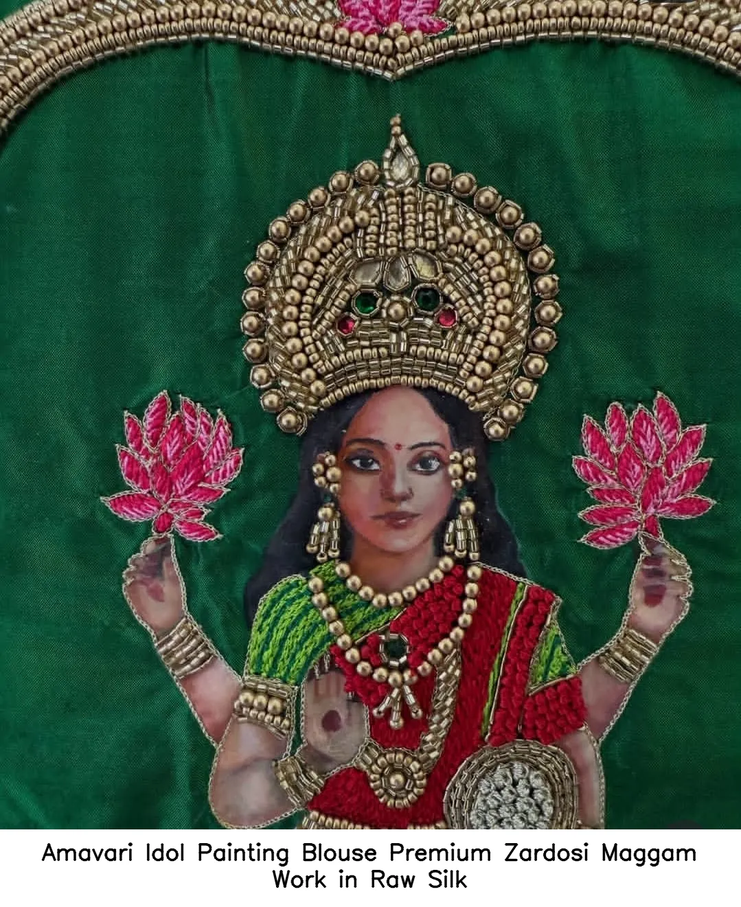 Amavari Idol Painting Blouse – Premium Zardosi Maggam Work in Raw Silk Features and Benefits