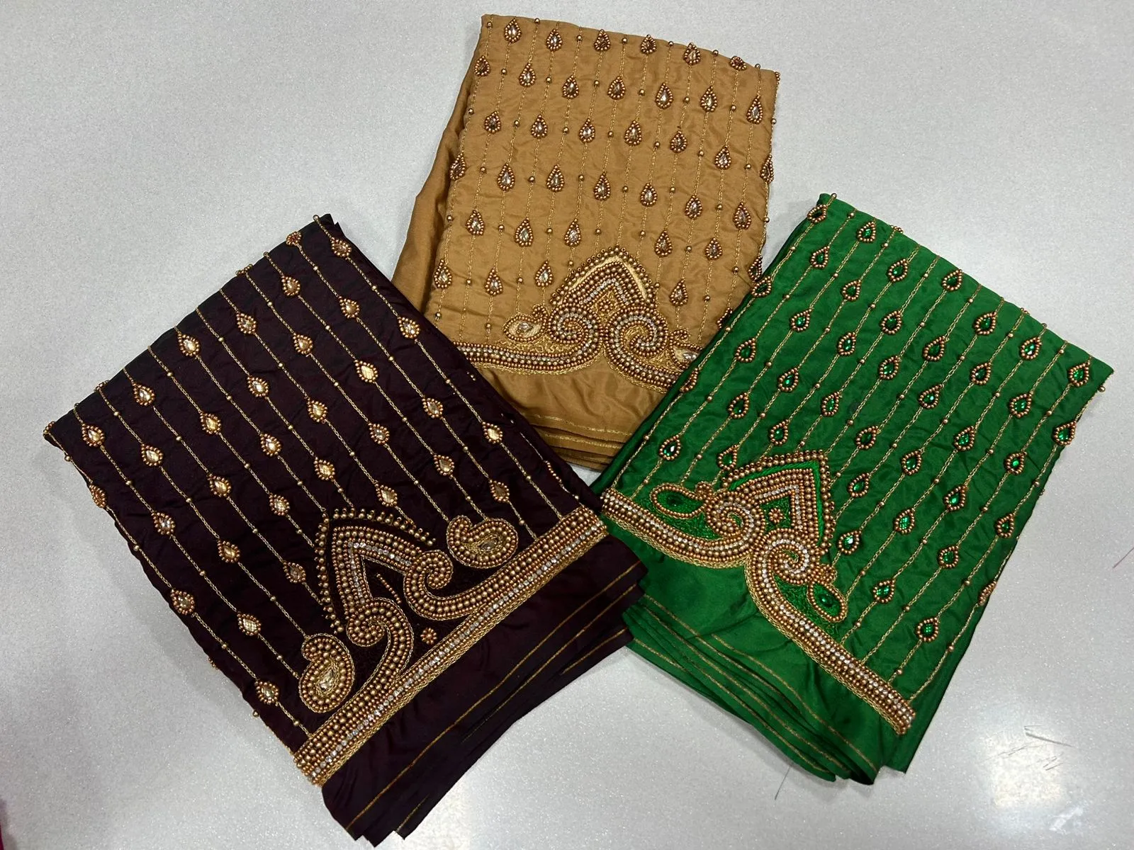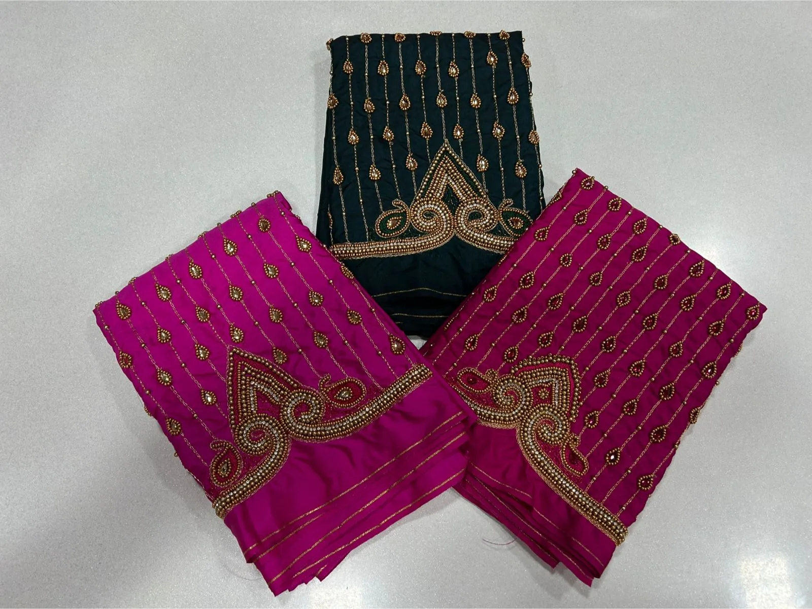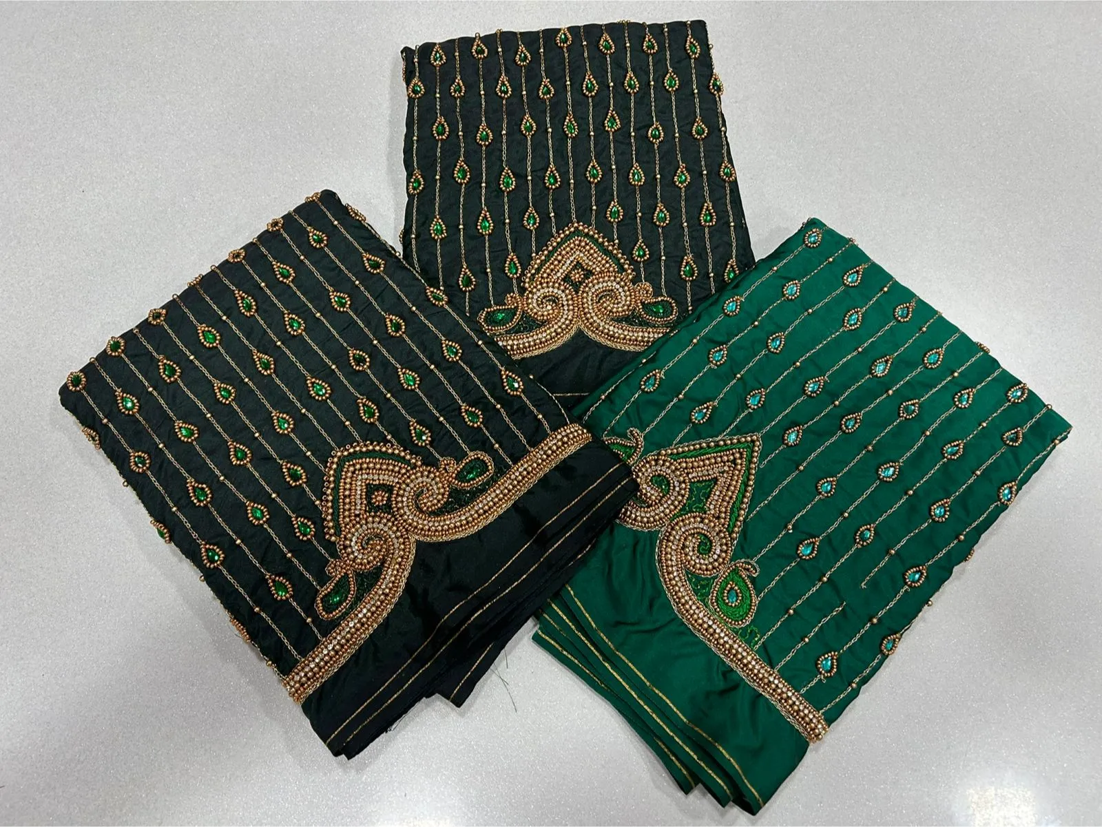Stunning Raw Silk with Maggam Work blouse. Crafted for traditional wear, pairs beautifully with silk sarees and lehengas.