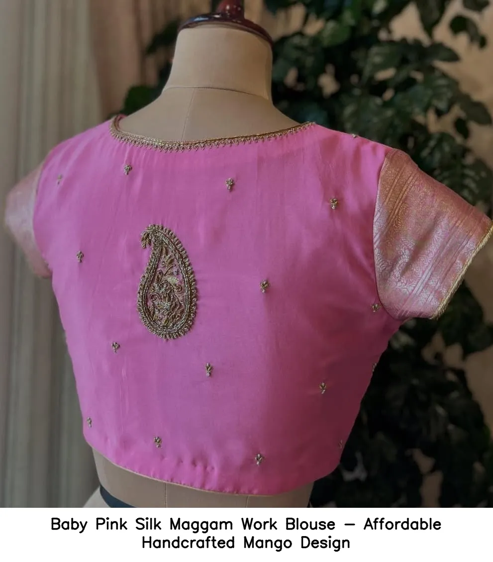 Baby Pink Silk Maggam Work Blouse – Affordable Handcrafted Mango Design