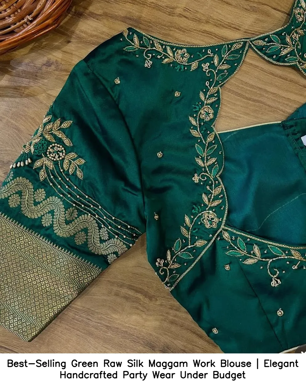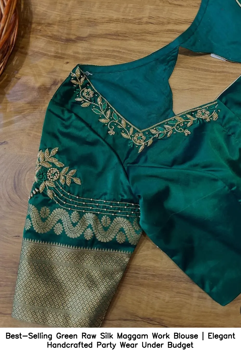 Product Name: Best-Selling Green Raw Silk Maggam Work Blouse | Elegant Handcrafted Party Wear Under Budget