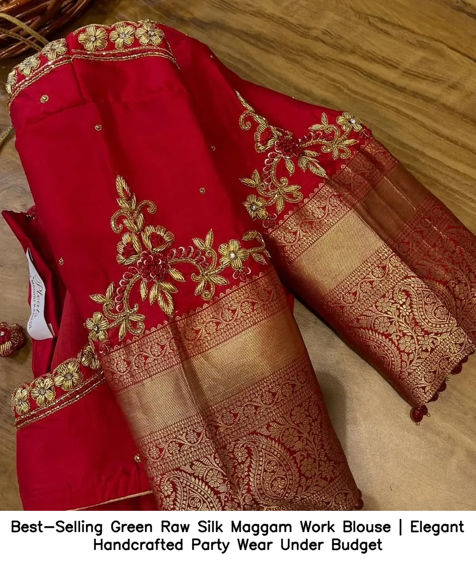 Best-Selling Green Raw Silk Maggam Work Blouse | Elegant Handcrafted Party Wear Under Budget