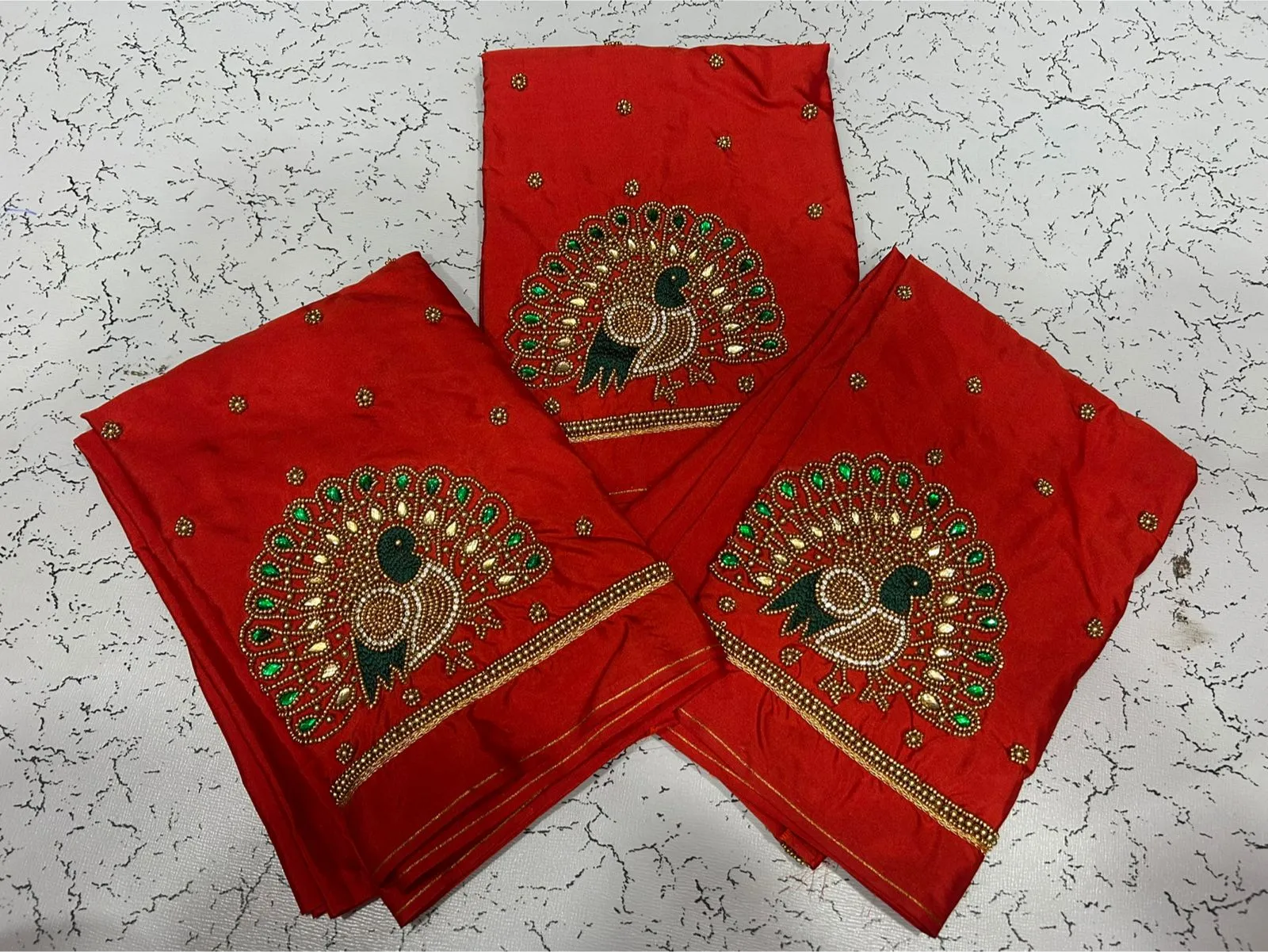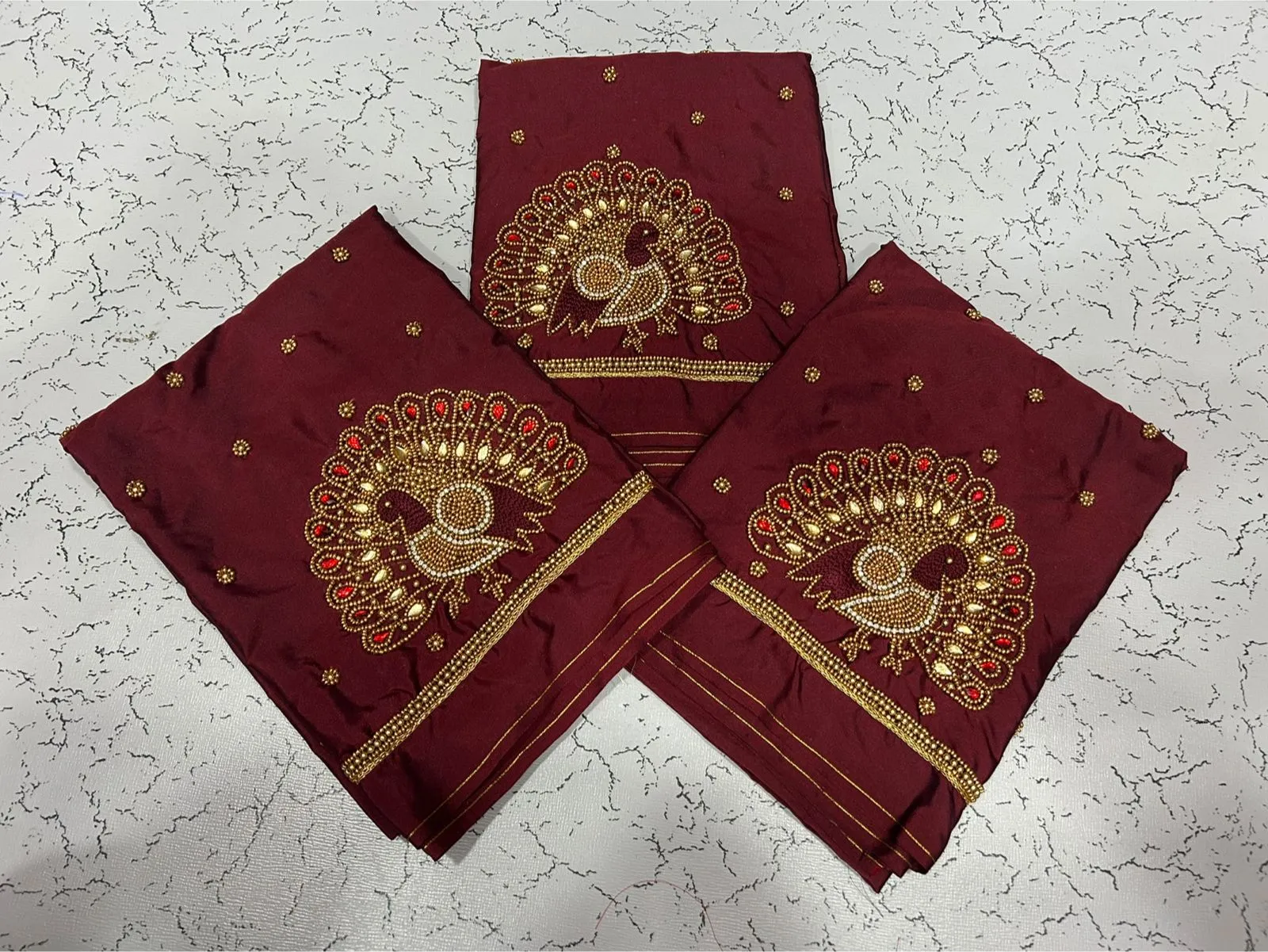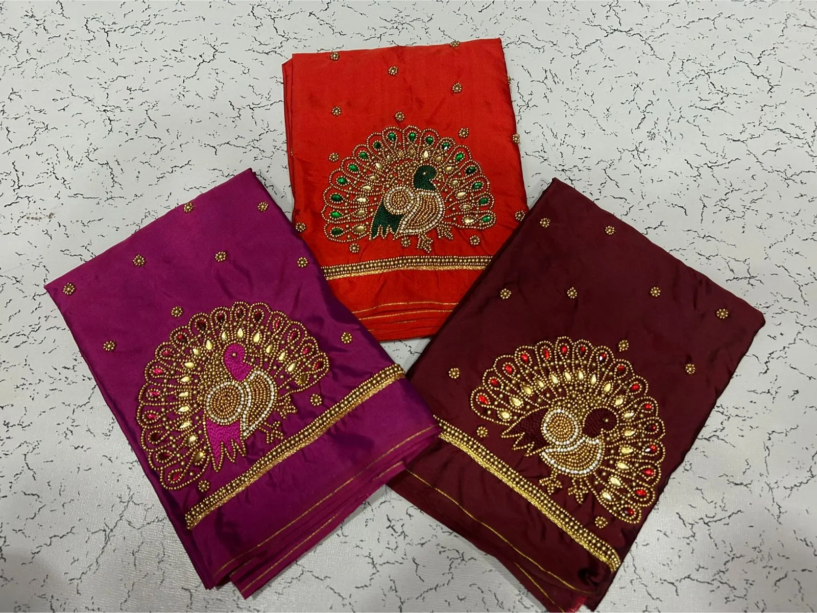 Experience the beauty of our Peacock Beads Blouse. It is available in sizes XL, XXL, and 3XL. Choose from a vibrant range of colors: Red, Pink, Green, Maroon, Wine, Yellow, Purple, and Brown. Browse our collection for more options.