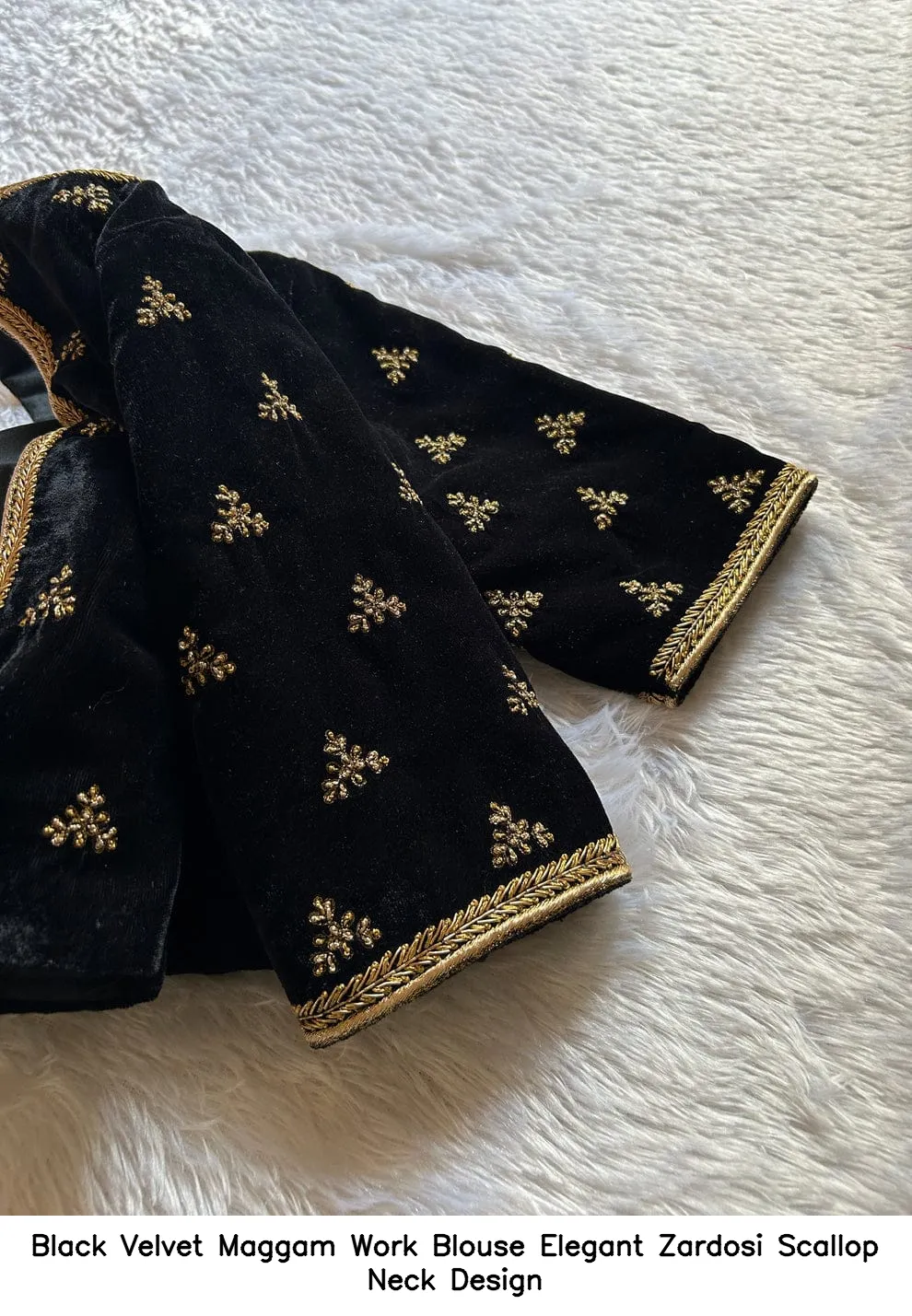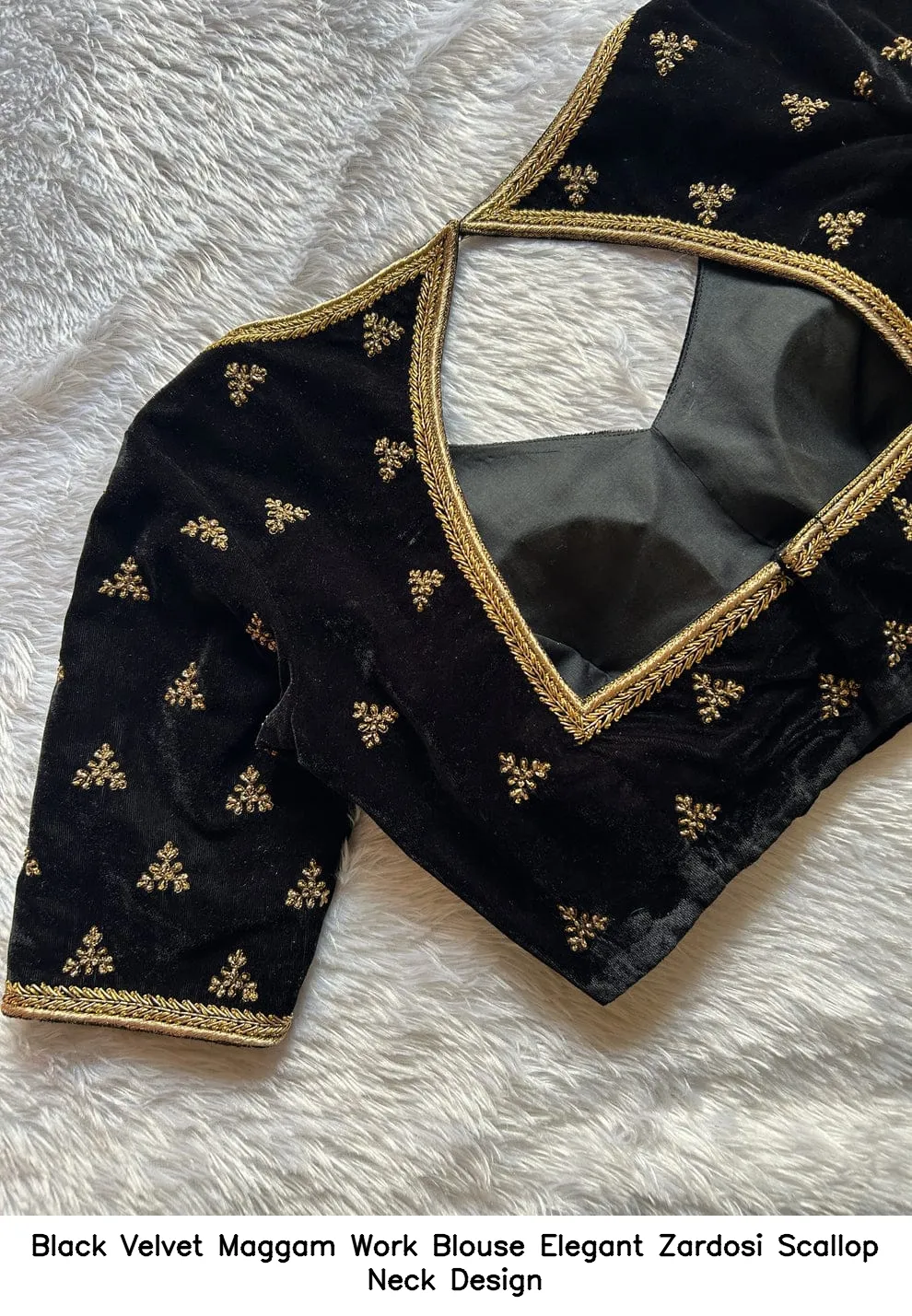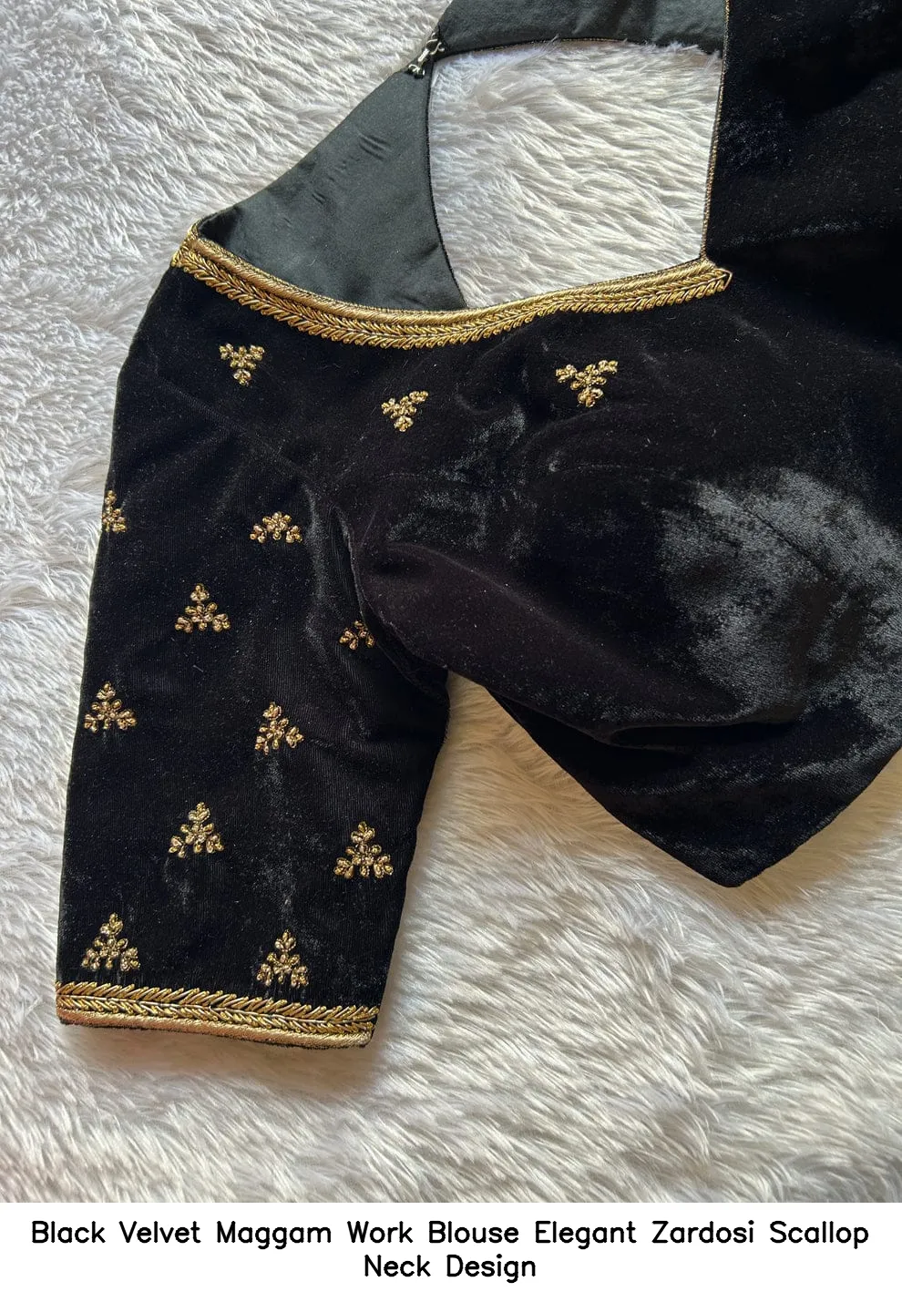 Why Choose Black Velvet Maggam Work Blouse – Elegant Zardosi Scallop Neck Design?