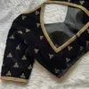 Black Velvet Maggam Work Blouse – Elegant Zardosi Scallop Neck Design offers a perfect blend of style and comfort. This blouse enhances your traditional attire, making it ideal for festive occasions. Moreover, its intricate zardosi detailing adds a touch of luxury, elevating your overall look.