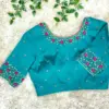 Product Name: Blue High Neck Silk Zardosi Maggam Work Blouse – Latest Prince Cut