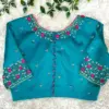 Blue High Neck Silk Zardosi Maggam Work Blouse – Latest Prince Cut