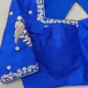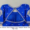 Product Name: Blue Peacock Silver Maggam Work Designer Blouse – Grand High Neck