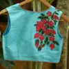 Product Name: Blue Raw Silk Designer Blouse | Custom Maggam Work