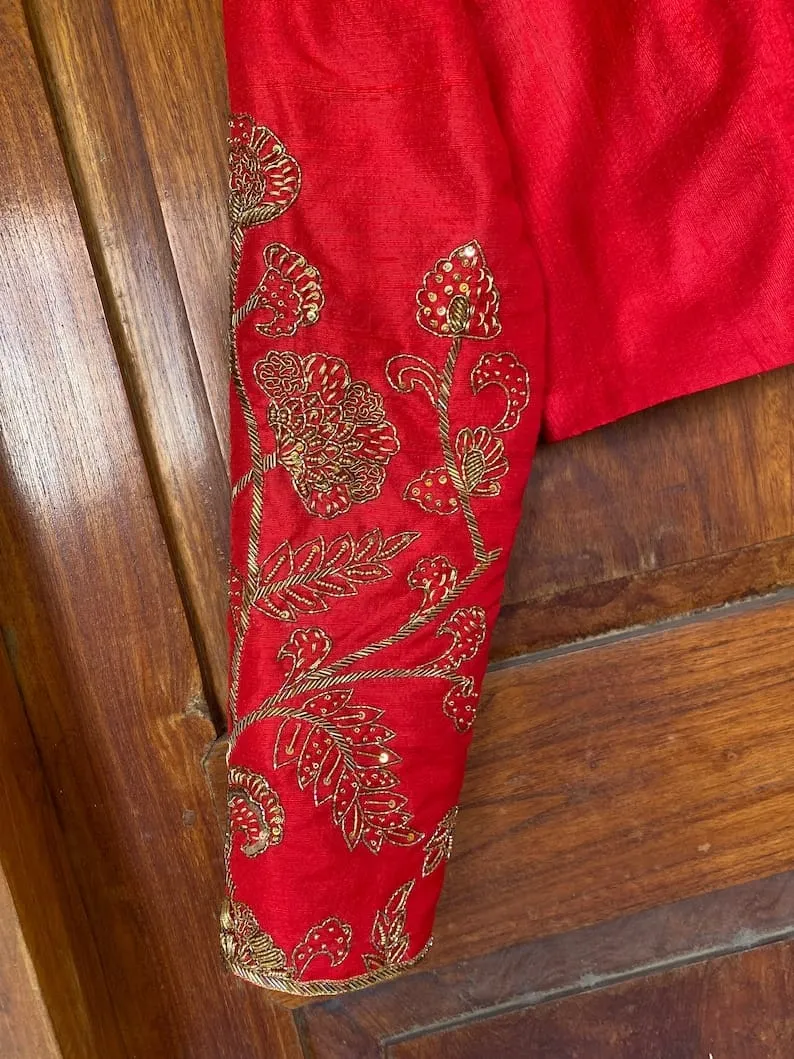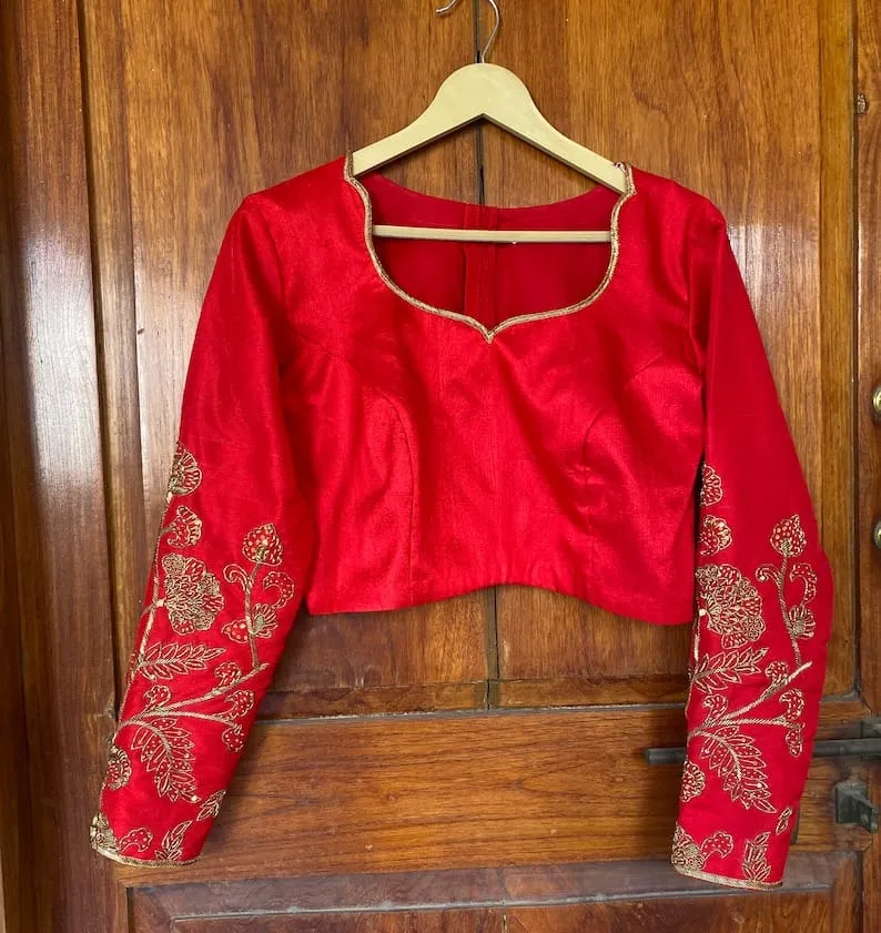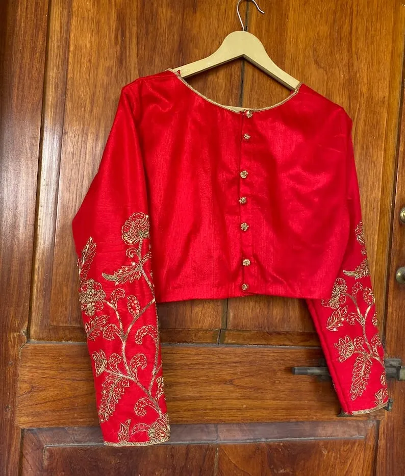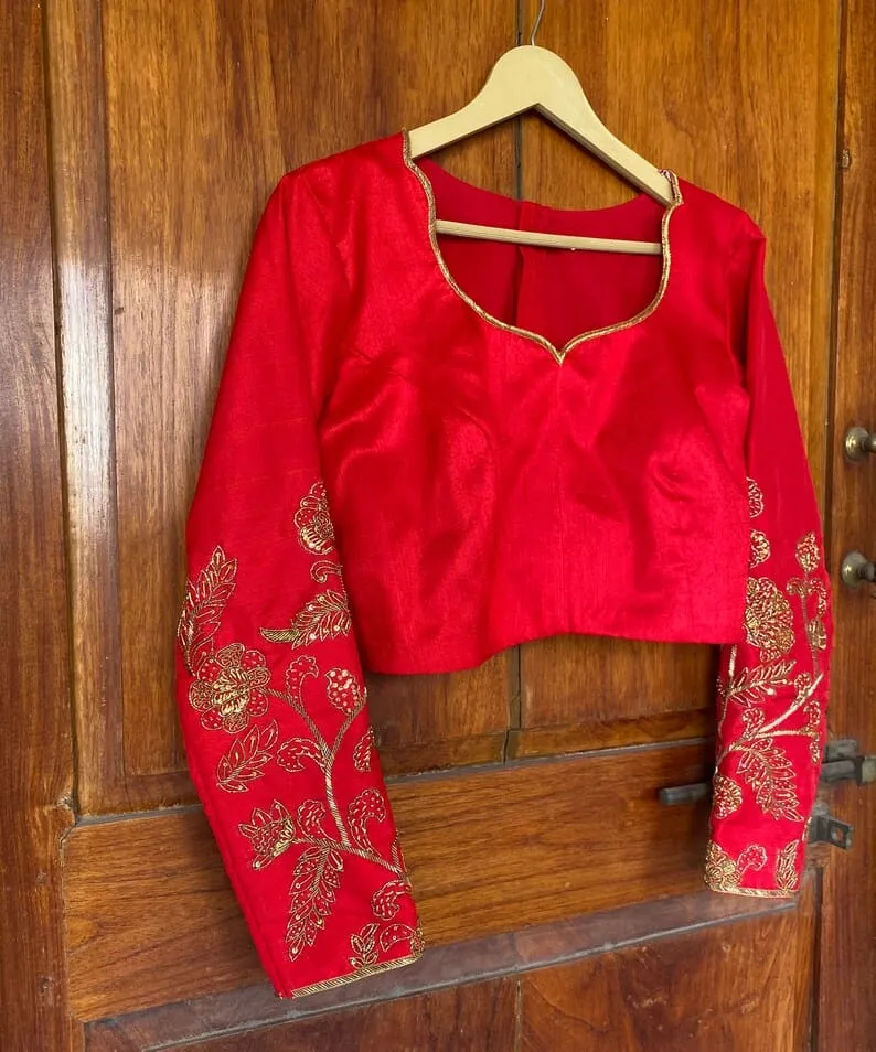 Product Name: Bold & Beautiful Red Full Sleeves Boat Neck Blouse – Trendy Party Pick