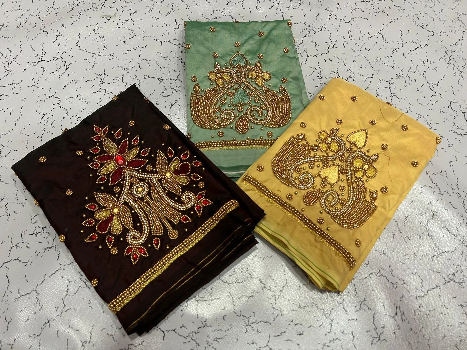 A: Hand wash in cold water with mild detergent. Avoid bleach, and hang to dry for best results. This preserves the intricate Aari work.