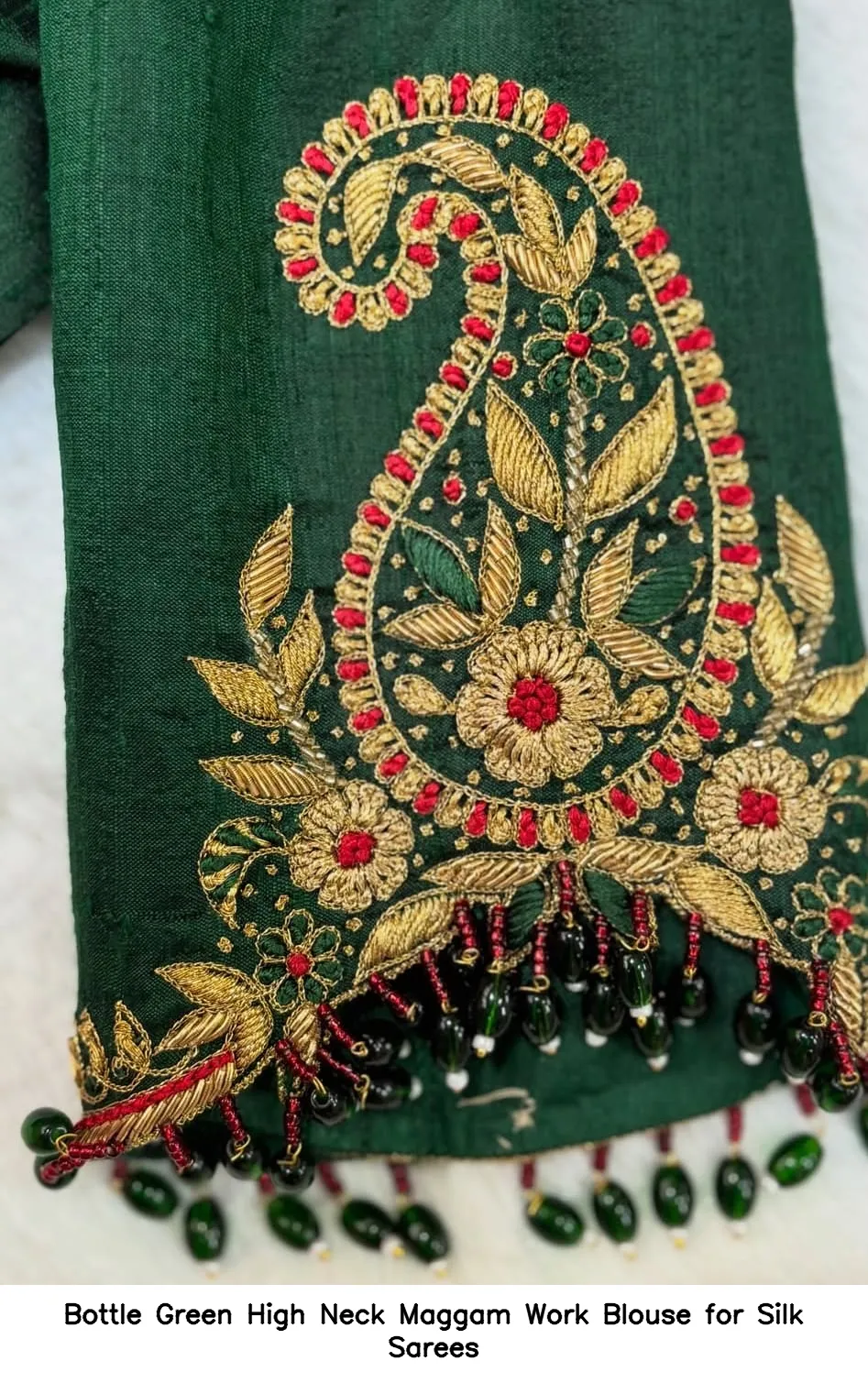 Product Name: Bottle Green High Neck Maggam Work Blouse for Silk Sarees