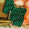 Bottle Green Silk Blouse with Floral Scalloped Neck and Peach Resham Work