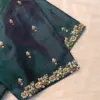 Product Name: Bottle Green Silk Blouse with Heavy Maggam Aari Work | Deep Neck Design