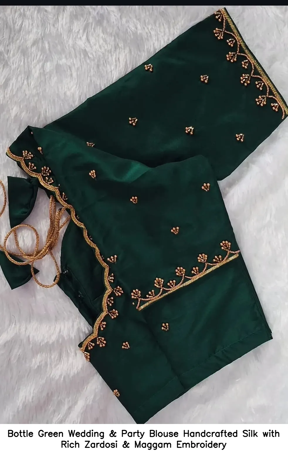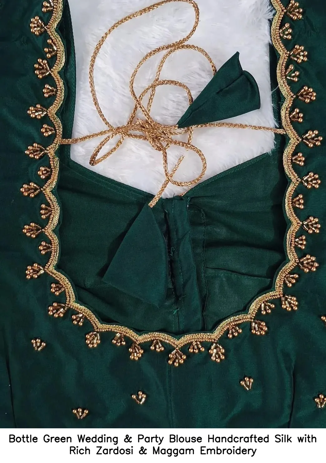 Why Choose Bottle Green Wedding & Party Blouse – Handcrafted Silk with Rich Zardosi & Maggam Embroidery?