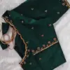 Product Name: Bottle Green Wedding & Party Blouse – Handcrafted Silk with Rich Zardosi & Maggam Embroidery