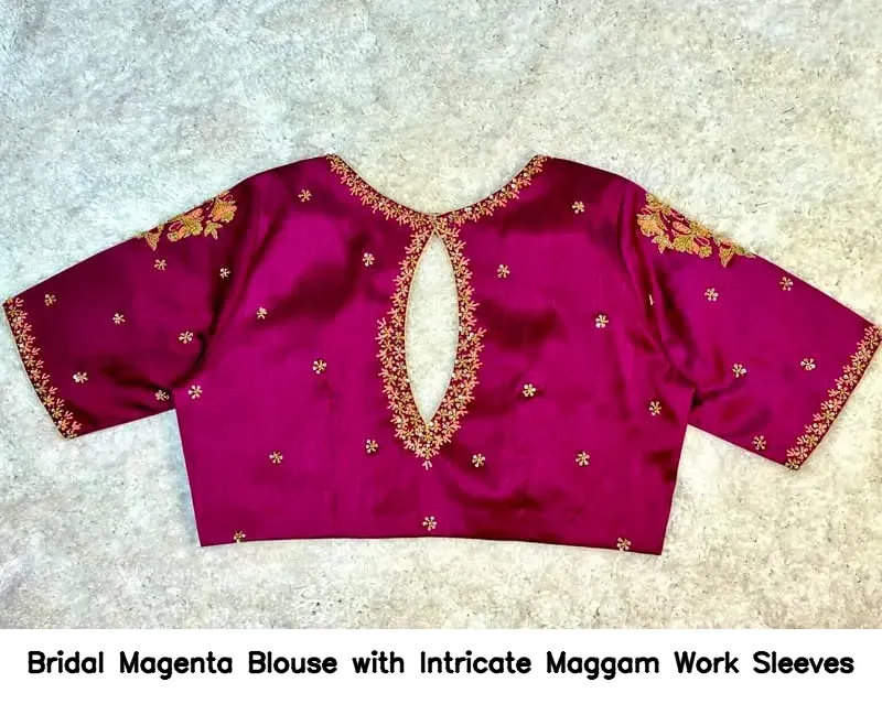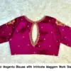 Bridal Magenta Blouse with Intricate Maggam Work Sleeves