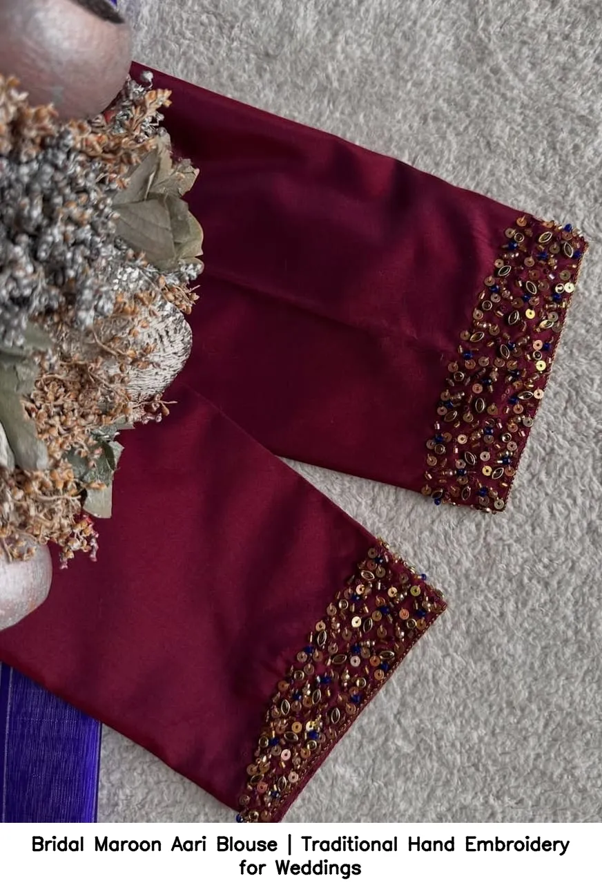 Bridal Maroon Aari Blouse | Traditional Hand Embroidery for Weddings