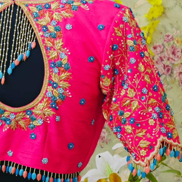 The Blush Melody bridal blouse is more than an outfit; it’s a statement of grace, tradition, and beauty. The vibrant color palette, combined with detailed handwork, reflects a perfect blend of heritage and modern elegance, making it an ideal choice for weddings, receptions, or grand festive occasions.