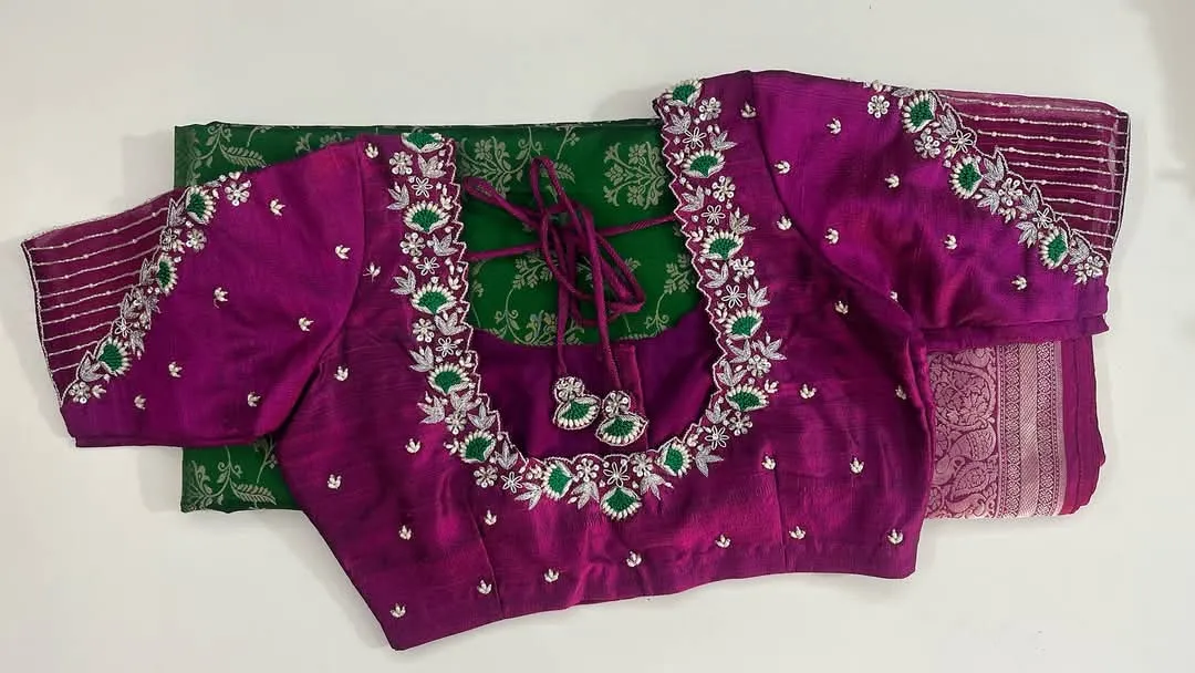 Enhance your wardrobe with this stunning blouse. It pairs beautifully with traditional attire. Also, follow us on Facebook for updates and style inspiration!