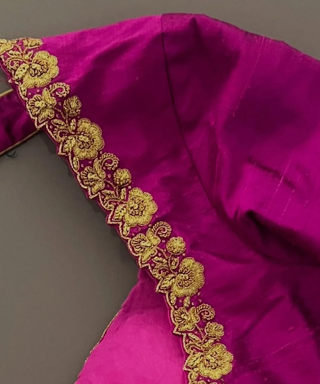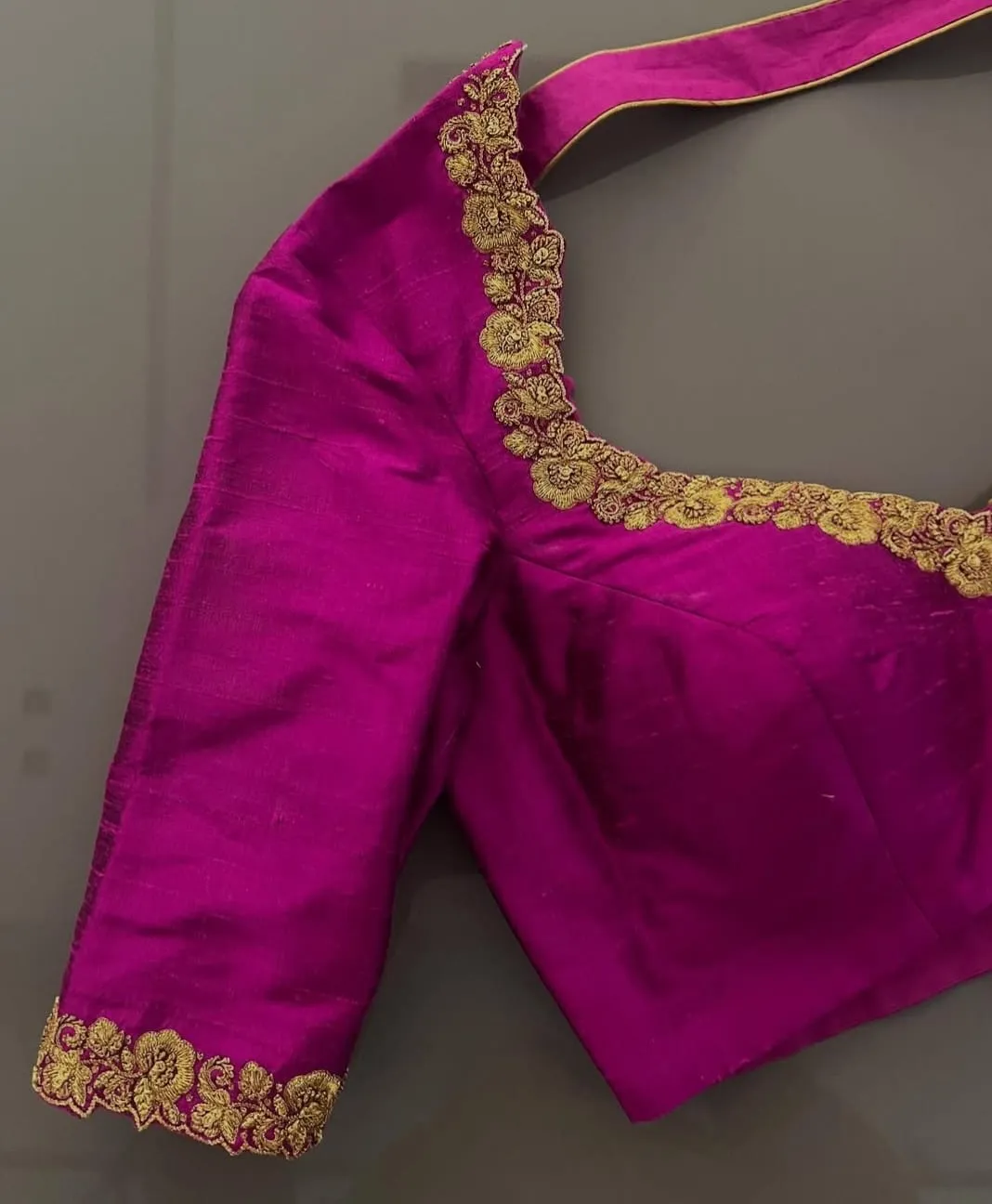 Bridal Pink Zardosi Maggam Work Blouse in Premium Raw Silk Designer Elegance for Wedding Day