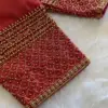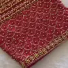 Product Name: ​​​​Bridal Red Silk Aari Work Blouse – Handcrafted Scallop Gold Bead Work Designer Blouse