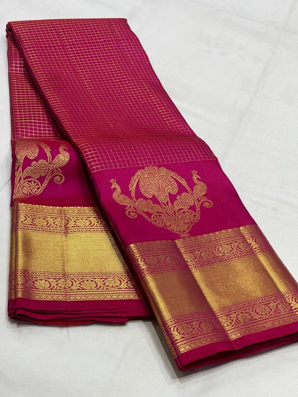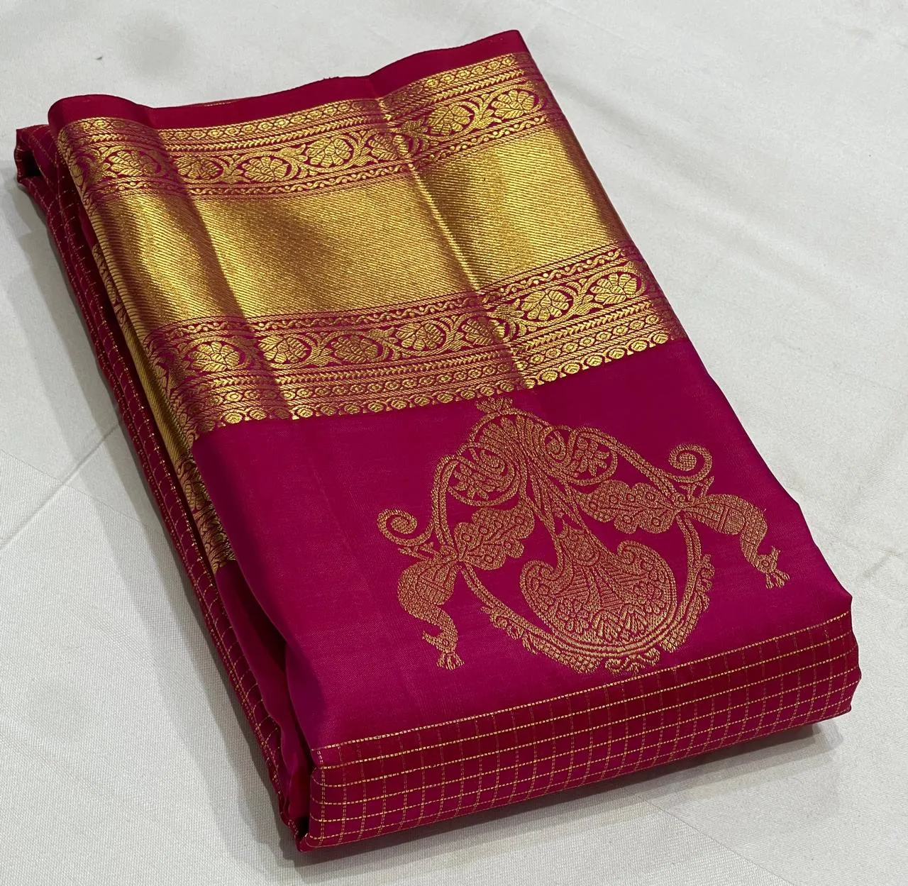 Stunning Pink Silk saree. Crafted for bridal wear, pairs beautifully with silk sarees and lehengas.