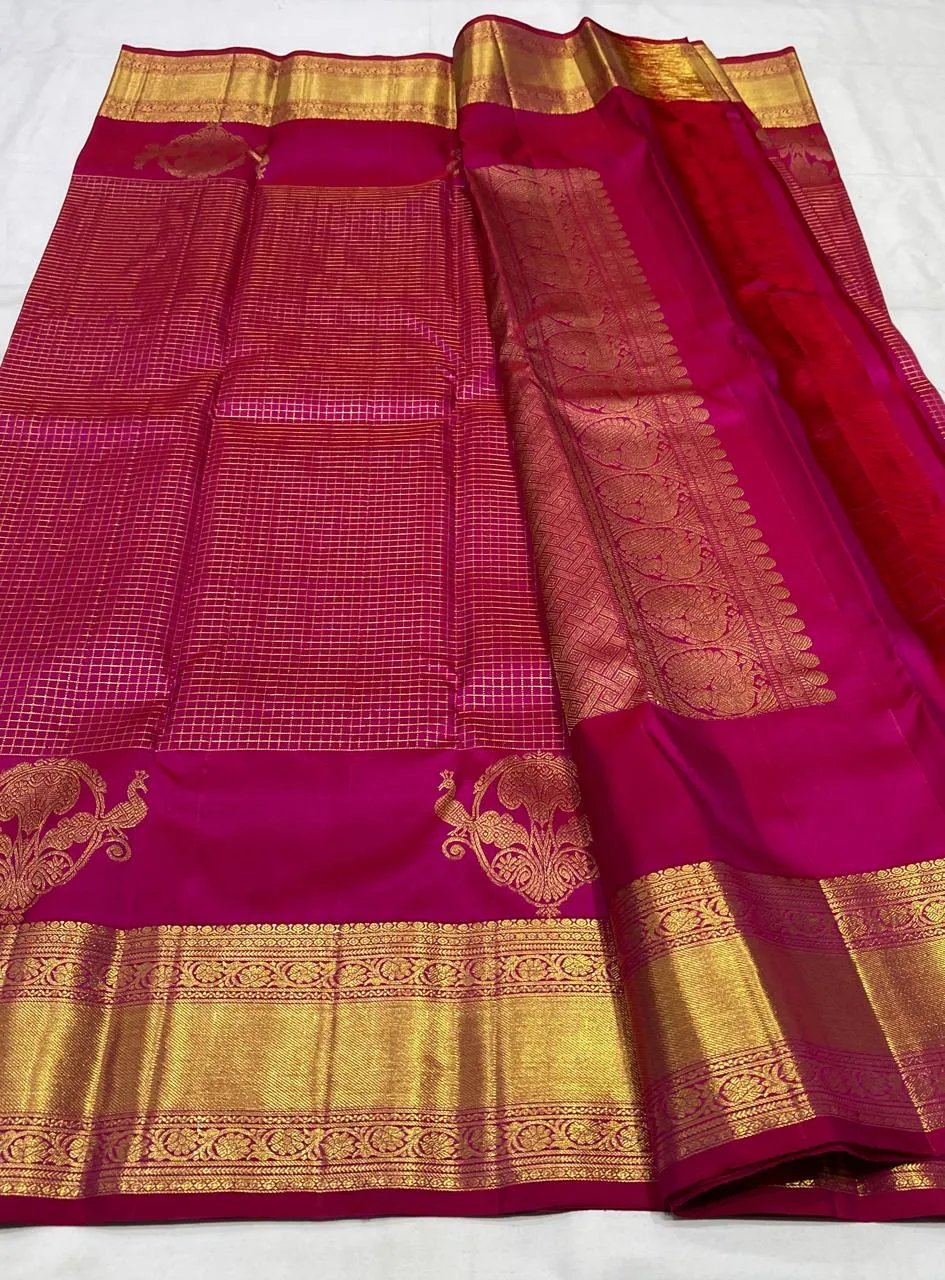 BridalGrade 100% Pure Kanchipuram Silk Saree Pink Tone with 2G++ Pure Zari & Silk Mark Certification
