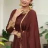 Brown Designer Anarkali Suit with Traditional Maggam Work Ideal Festive Wear is perfect for festive occasions. Moreover, its intricate maggam work adds elegance to your look. This stunning outfit enhances your style effortlessly.