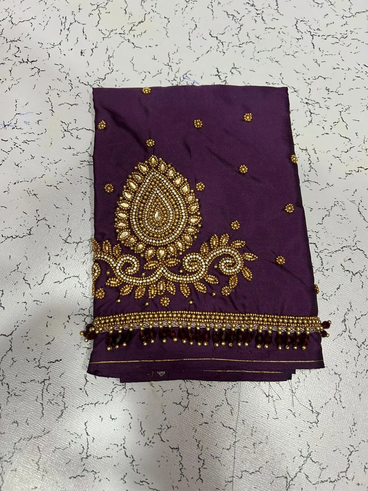 Stunning Purple Raw Silk with Maggam Work blouse. Crafted for wedding and festive wear, pairs beautifully with silk sarees and lehengas.