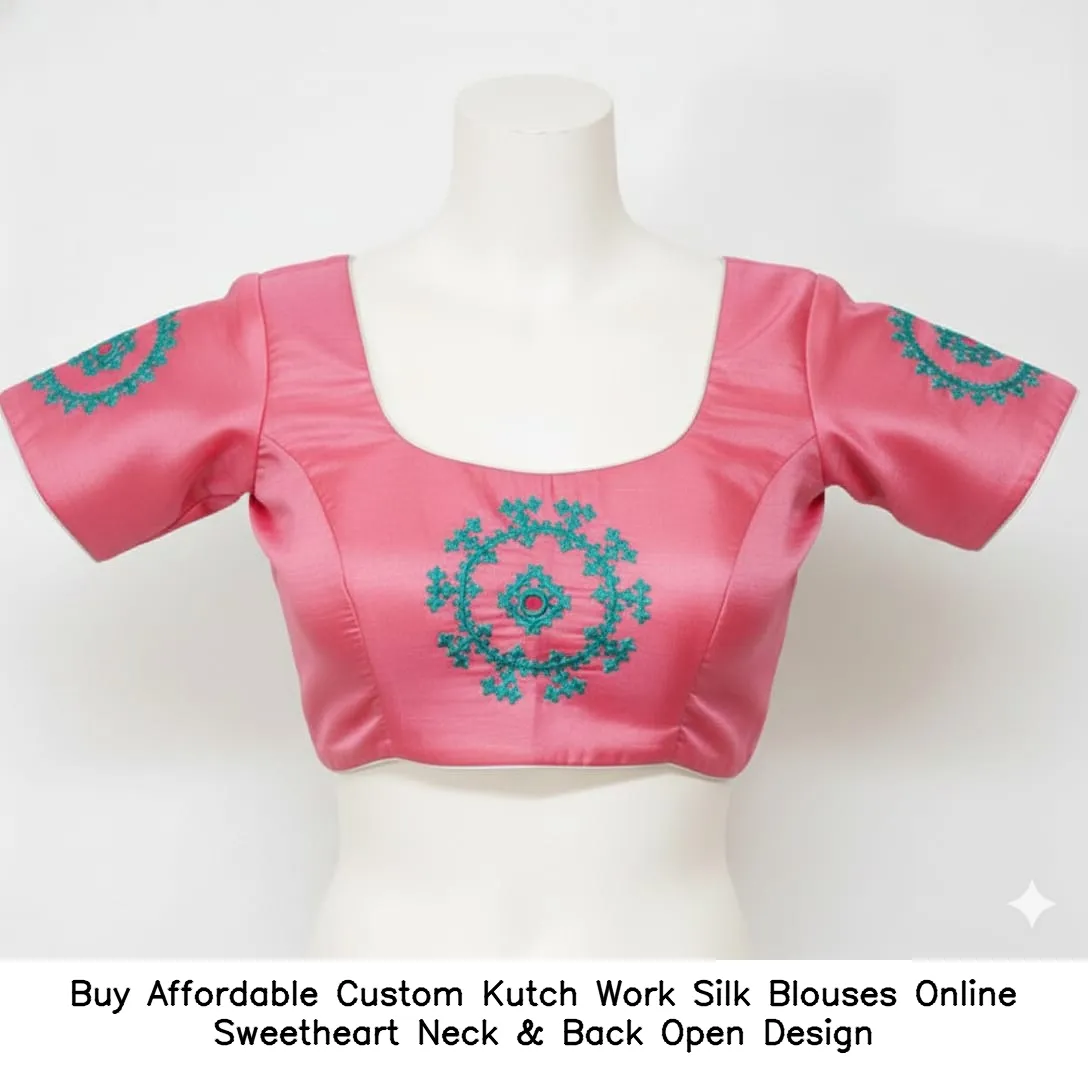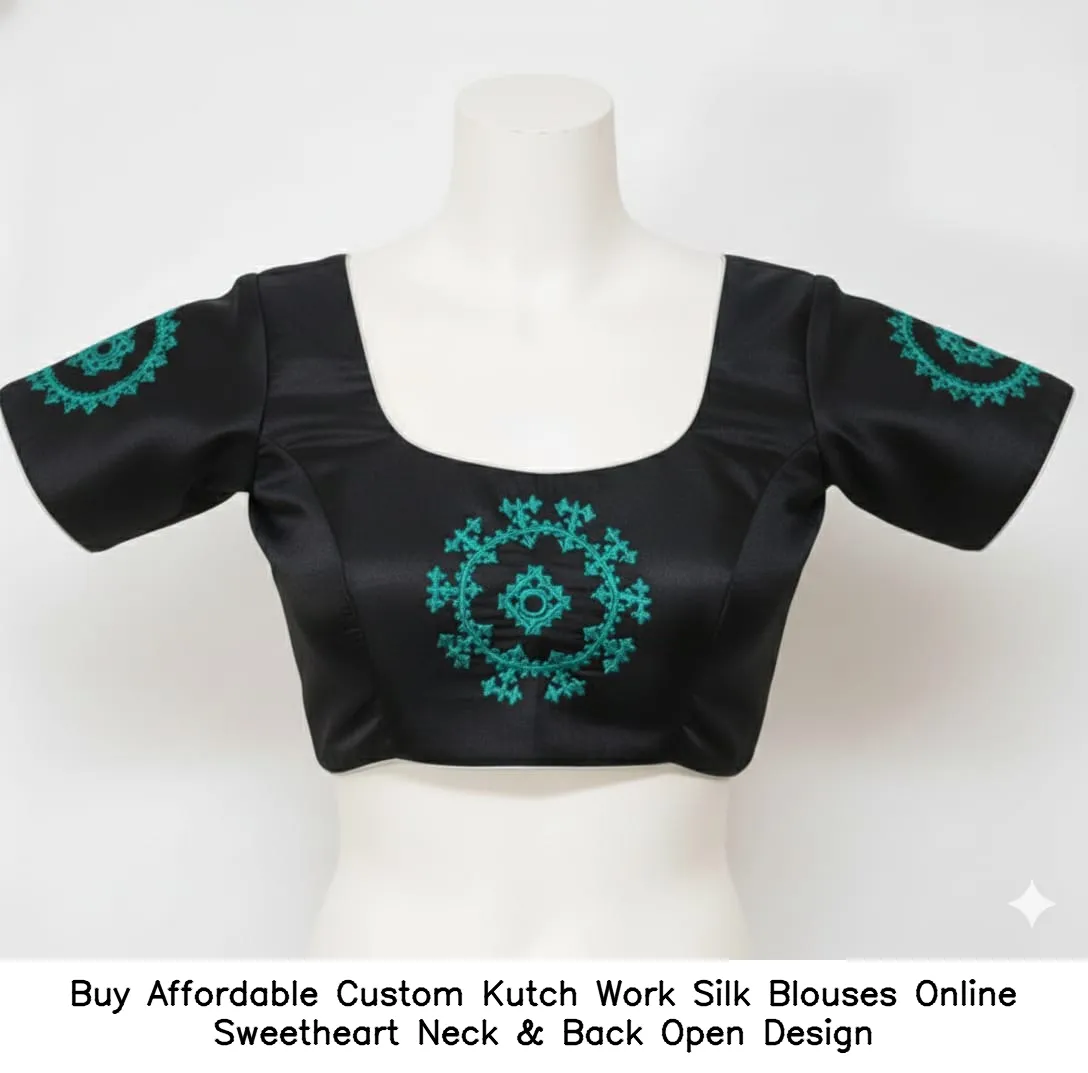 Buy Affordable Custom Kutch Work Silk Blouses Online – Sweetheart Neck & Back Open Design Features and Benefits