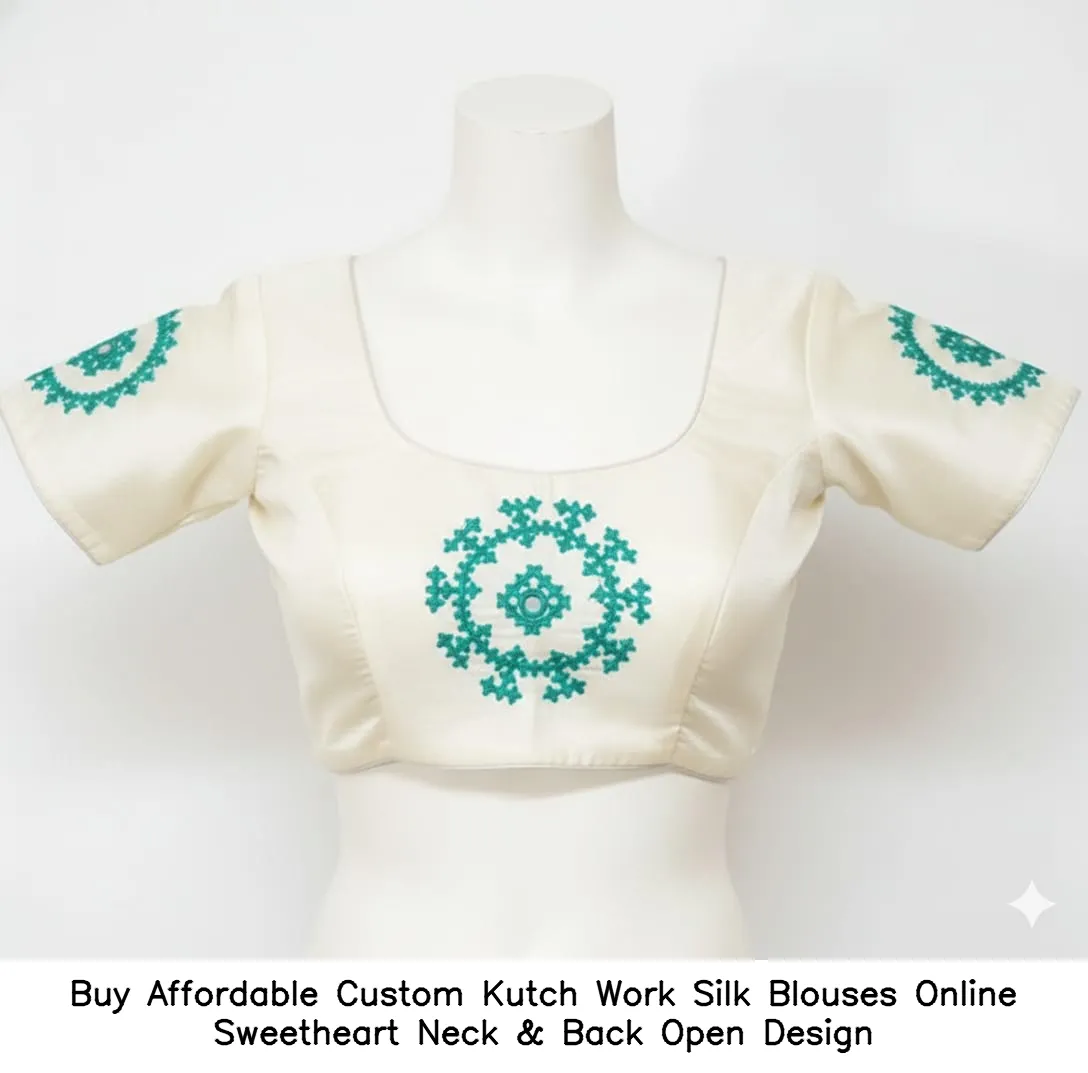 Why Choose Buy Affordable Custom Kutch Work Silk Blouses Online – Sweetheart Neck & Back Open Design?