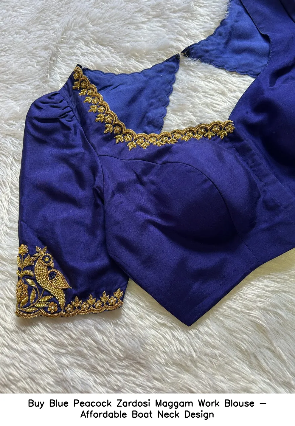 Why Choose Buy Blue Peacock Zardosi Maggam Work Blouse – Affordable Boat Neck Design?