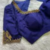 Q: What material is used in the Blue Peacock Zardosi Maggam Work Blouse?