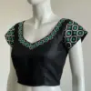 Product Name: ​​​​​Buy Custom Kutchwork Silk Blouses Online – Elegant Checks Buti Design