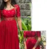 This beautiful frock comes in different sizes: XL, XXL, and 3XL. Available colors include Red, Pink, Blue, Purple, and Wine. For more options, browse our collection.