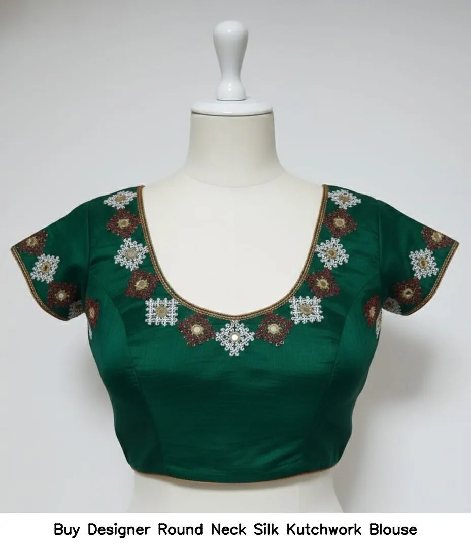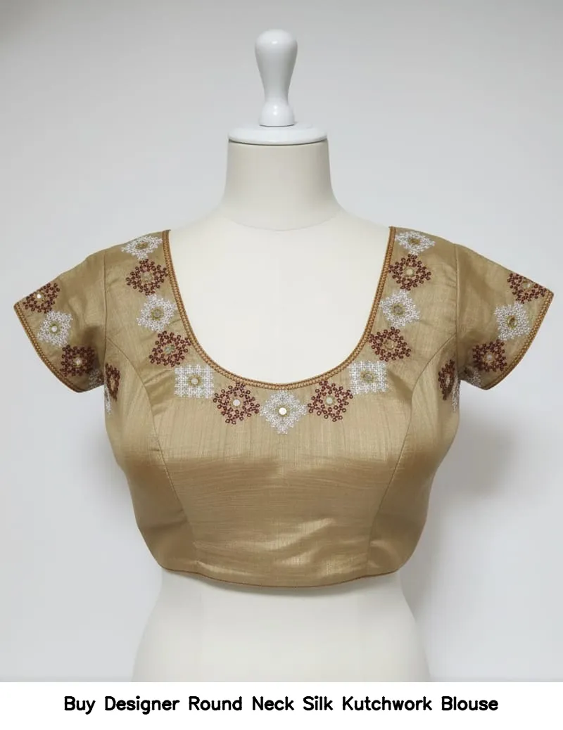 Product Name: ​​​Buy Designer Round Neck Silk Kutchwork Blouse