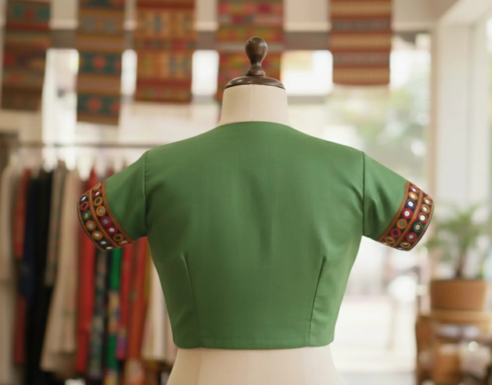 Buy Green Handcrafted High Neck Ready to Wear Blouse Multipurpose Designer Wear for its unique design and versatility. This blouse is perfect for any occasion. Furthermore, it combines style and comfort effortlessly.