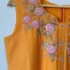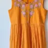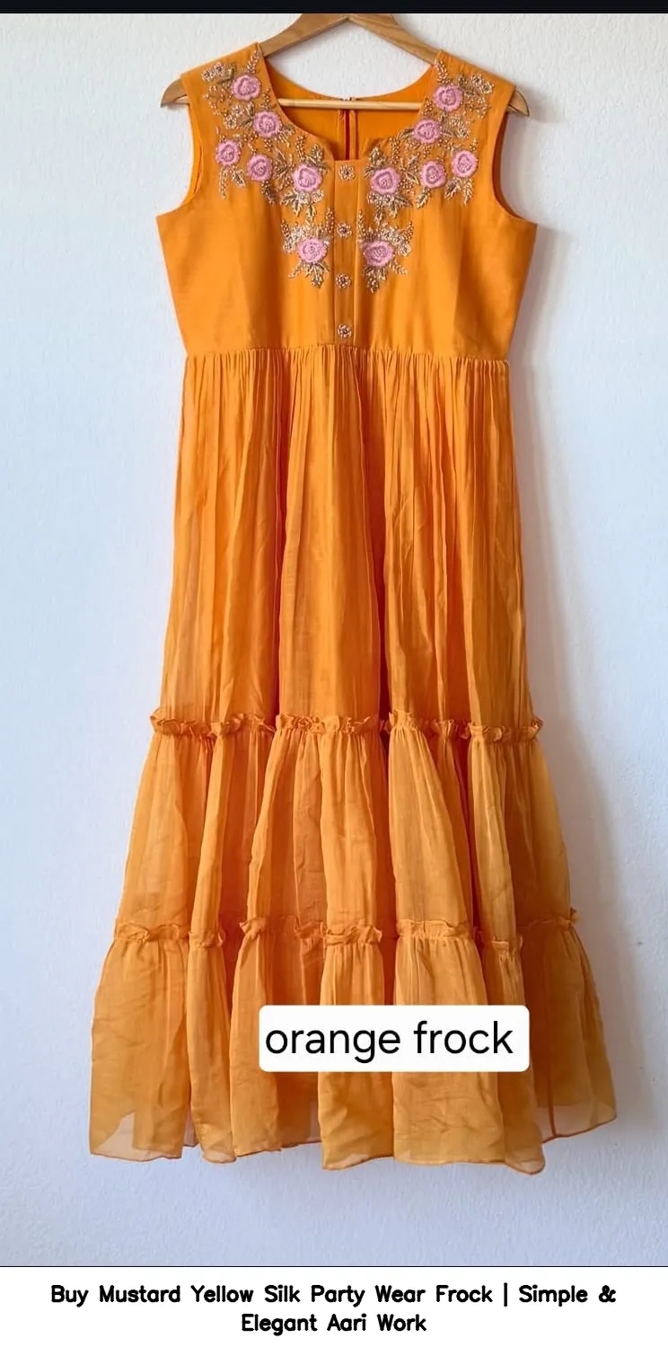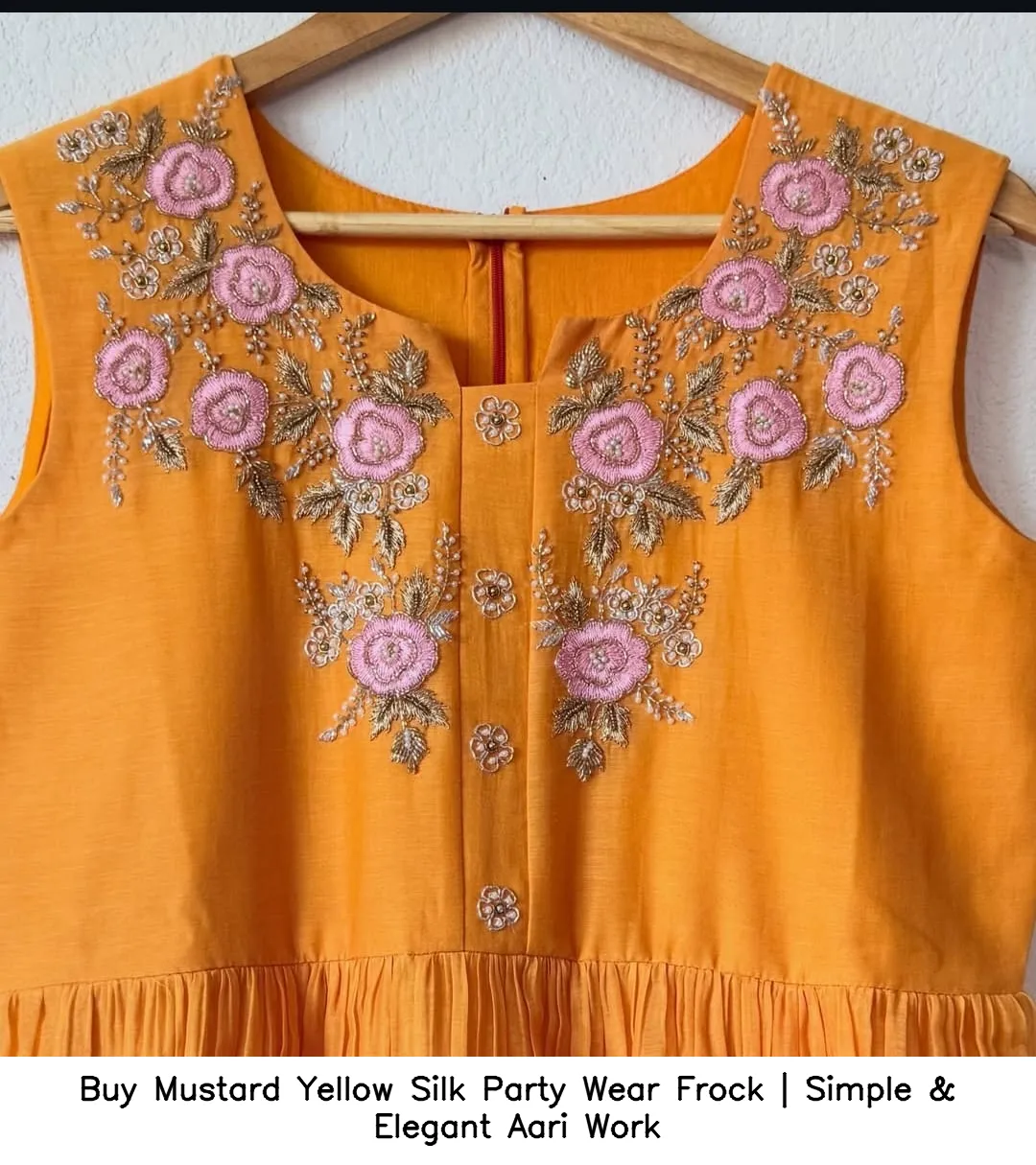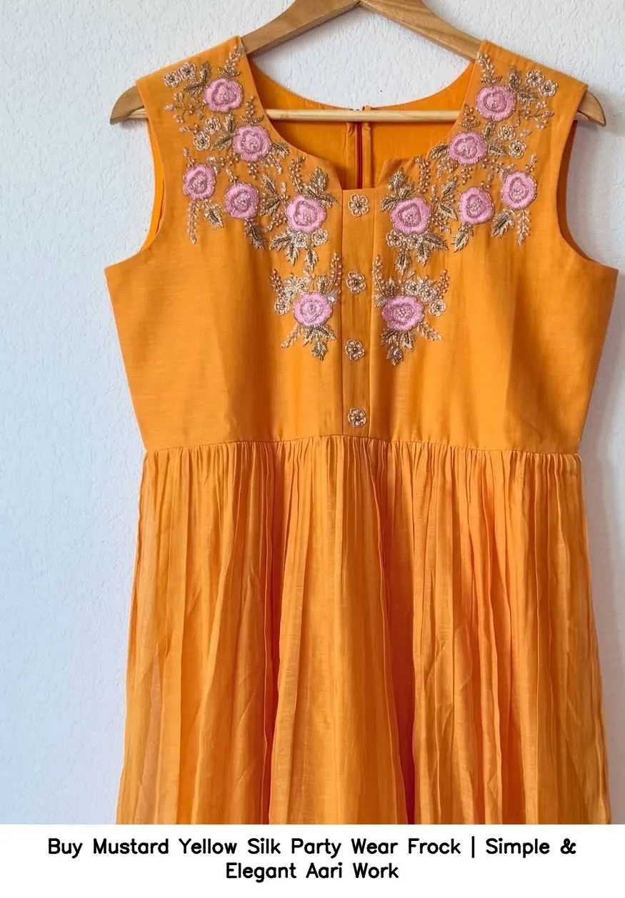 ​​Buy Mustard Yellow Silk Party Wear Frock | Simple & Elegant Aari Work