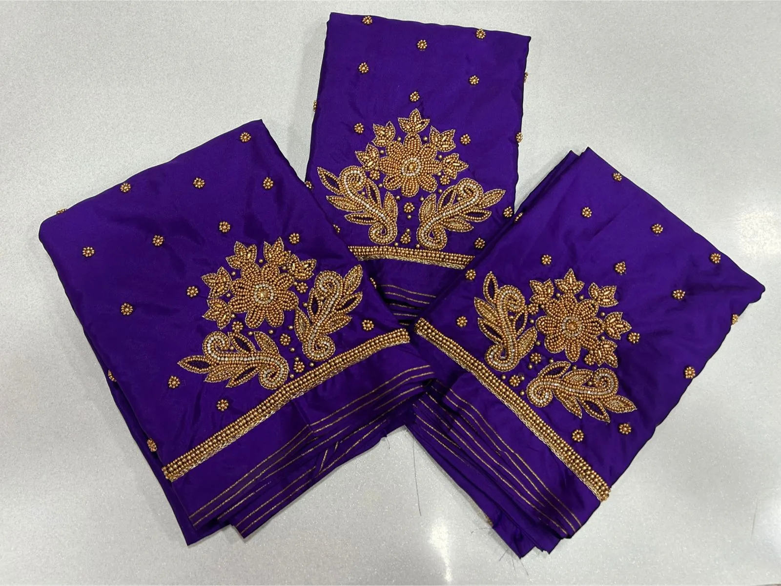 Stunning Raw Silk with Aari Work blouse. Crafted for wedding and festive wear, pairs beautifully with silk sarees and lehengas.