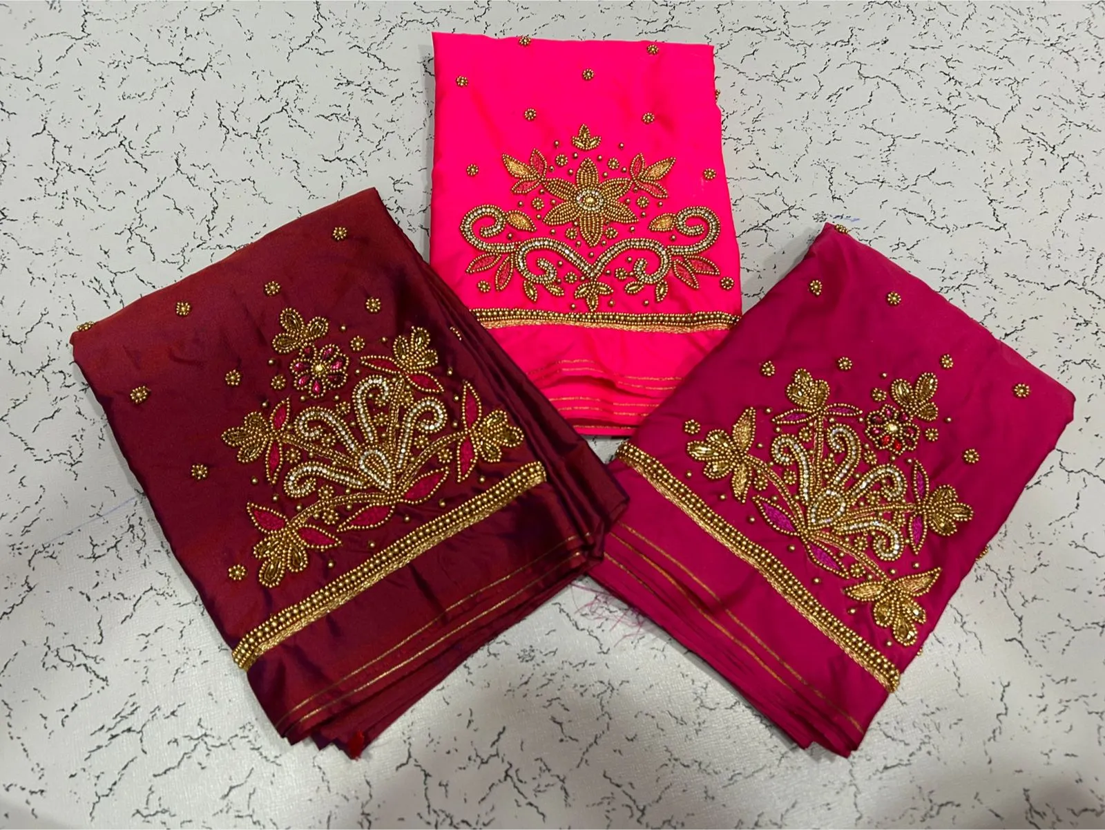 Q: What is the material quality of the Online Flower Design Aari Work Blouse Set Under ₹600 Custom Size Budget Blouses Collection?