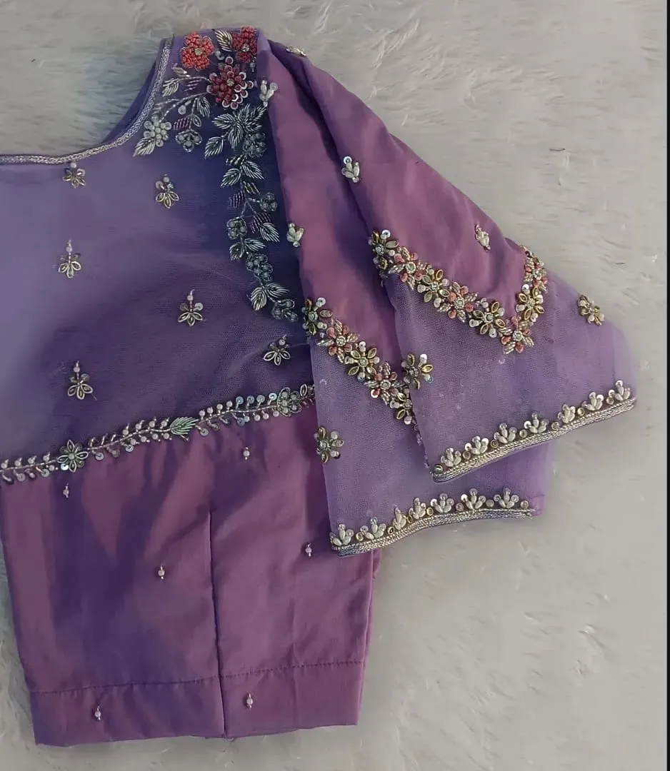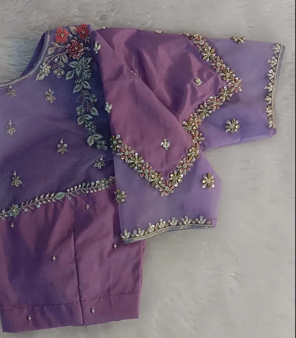 Why Choose Online Lavender Net Stylish Maggam Work Blouse Ready to Wear Party Wear Under ₹4500?