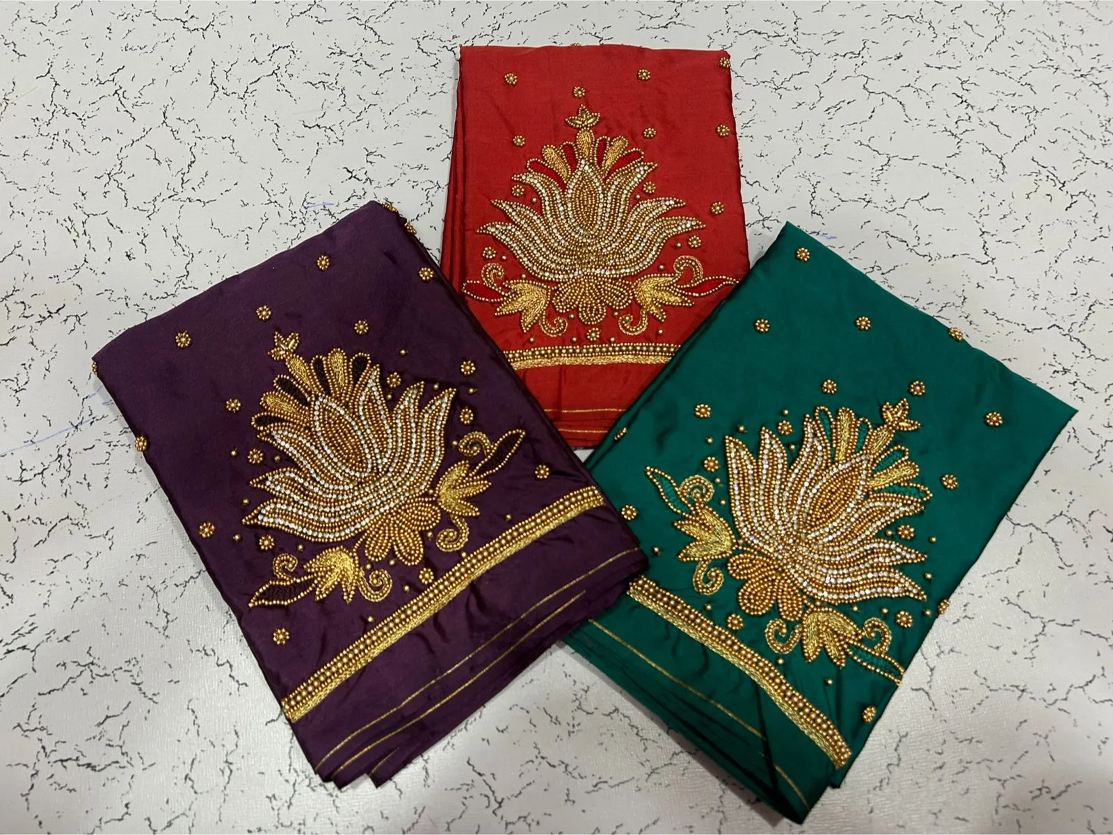 Buy Online Lotus Design Maggam Work Blouse Under ₹600 Best Budget Bridal Blouse in Custom Sizes
