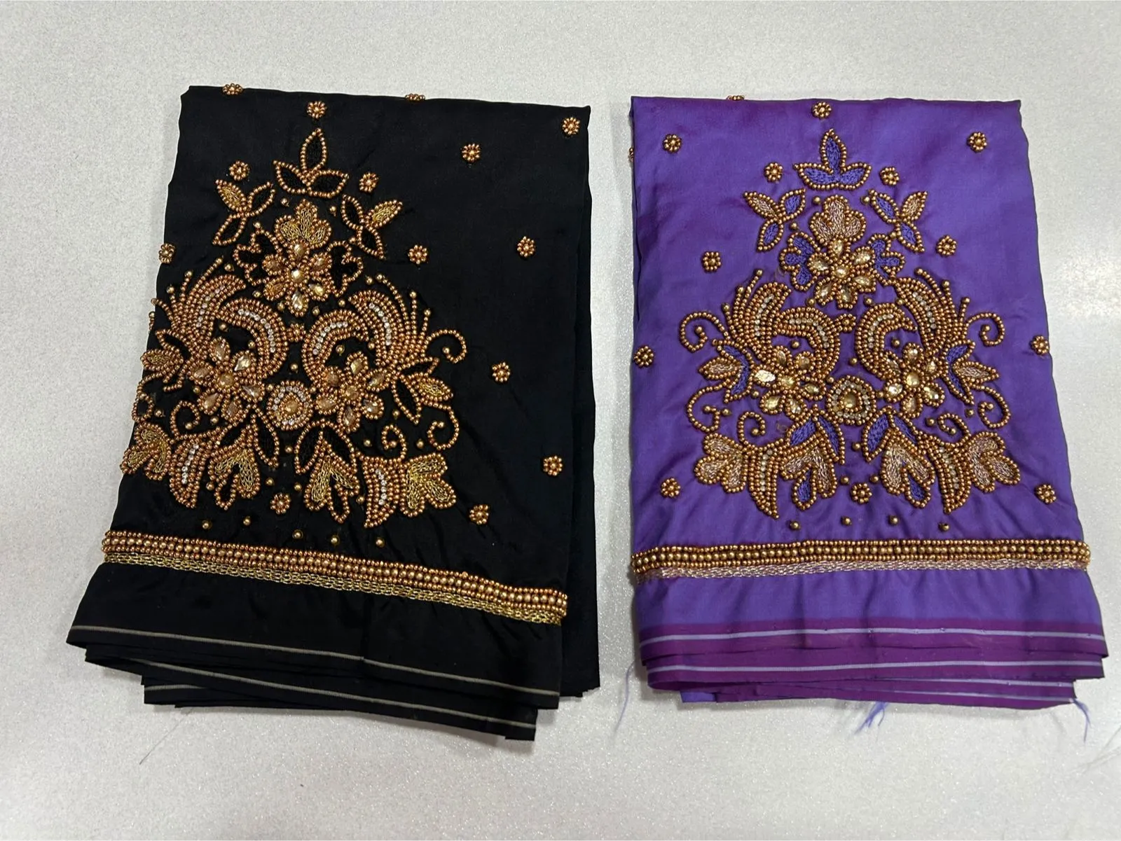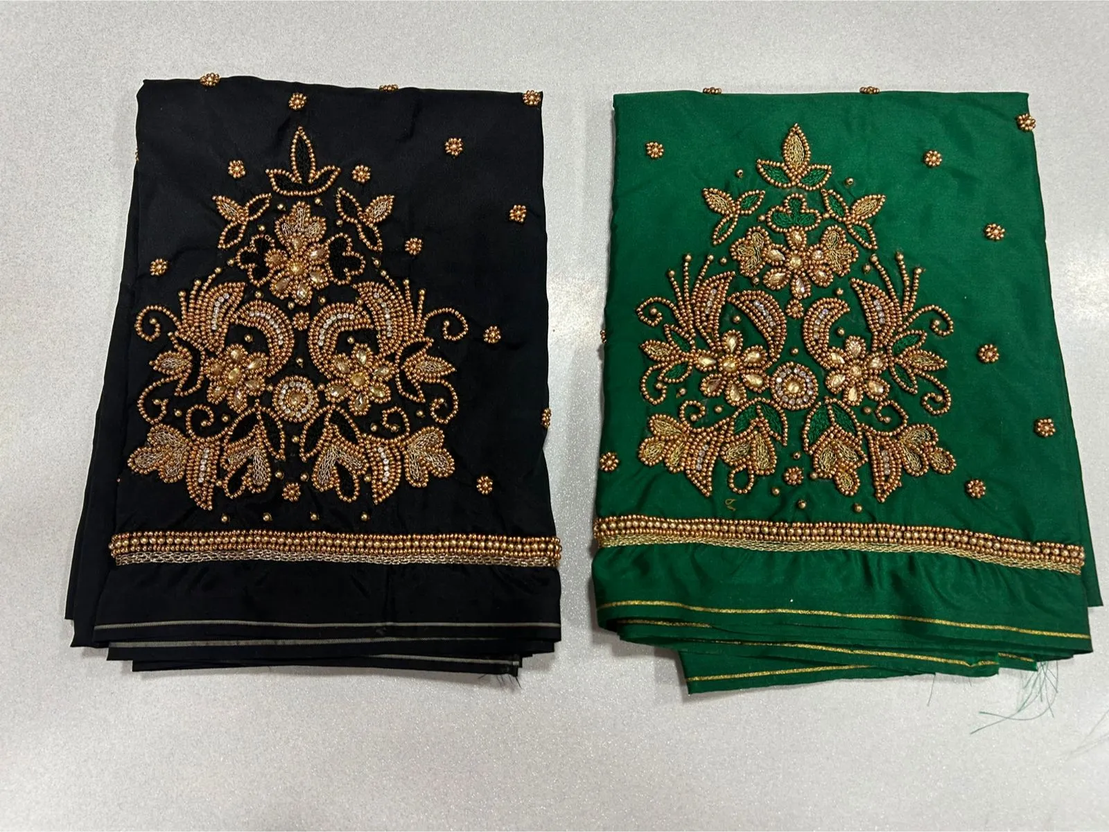 Q: What material is used in the Online Premium-Quality Black Maggam Work Blouse Under ₹600 Budget Wedding Collection?