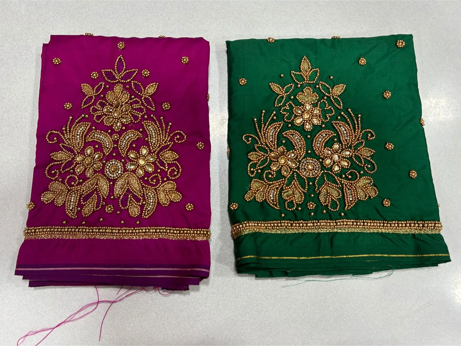 Hand wash the blouse gently to maintain its beauty. Furthermore, avoid harsh detergents to keep the fabric intact. Always air dry it to preserve the quality of the maggam work.