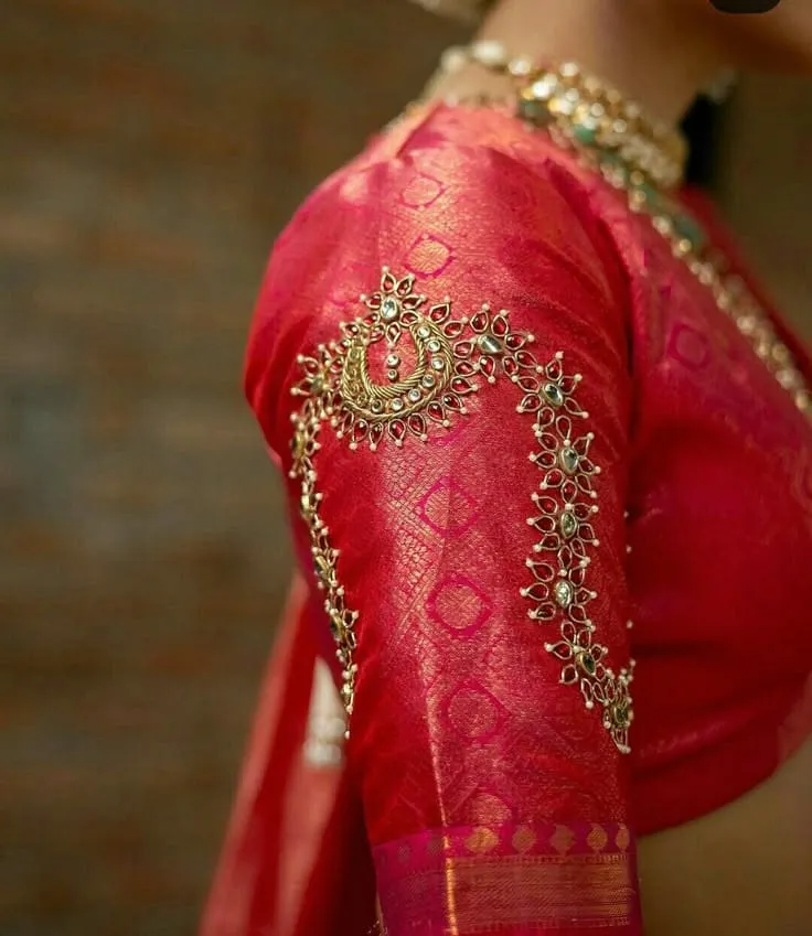 Product Name: Buy Online Red Bajuband Maggam Work Blouse Under ₹3000 Luxury Bridal Look in Budget