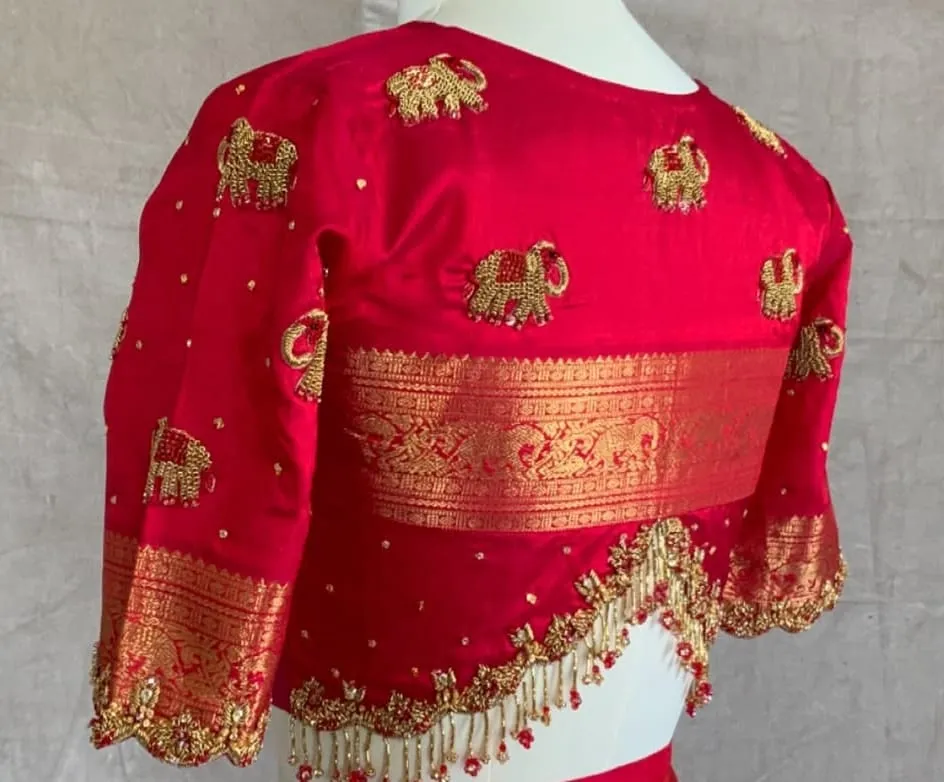 Buy Online Red Elephant Maggam Work Blouse Elegant Party Wear, Premium Design in Custom Sizes